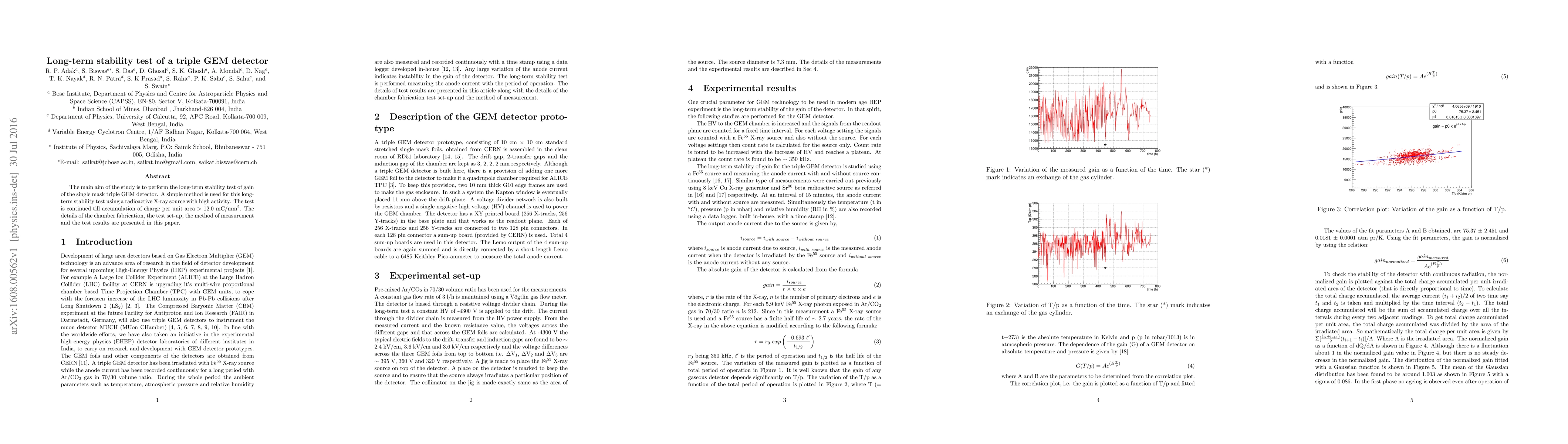 This study investigates the long-term stability of the gain in a single mask triple GEM detector using a high-activity radioactive X-ray source, with results showing stable performance until charge accumulation exceeds 12.0 mC/mm2. The paper details the detector fabrication, test setup, measurement method, and outcomes.