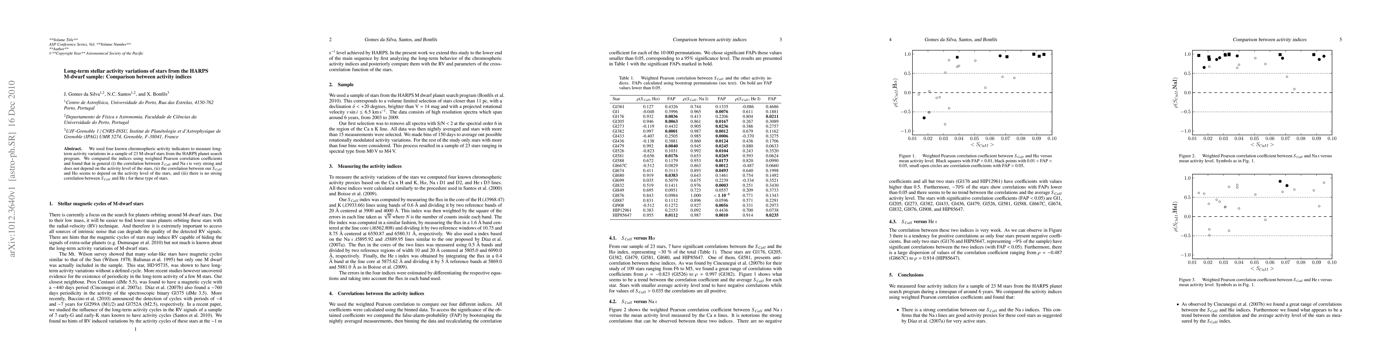 We used four known chromospheric activity indicators to measure long-term activity variations in a sample of 23 M-dwarf stars from the HARPS planet search program. We compared the indices using weighted Pearson correlation coefficients and found that in general (i) the correlation between $S_{CaII}$ and \ion{Na}{i} is very strong and does not depend on the activity level of the stars, (ii) the correlation between our $S_{CaII}$ and H$\alpha$ seems to depend on the activity level of the stars, and (iii) there is no strong correlation between $S_{CaII}$ and \ion{He}{i} for these type of stars.