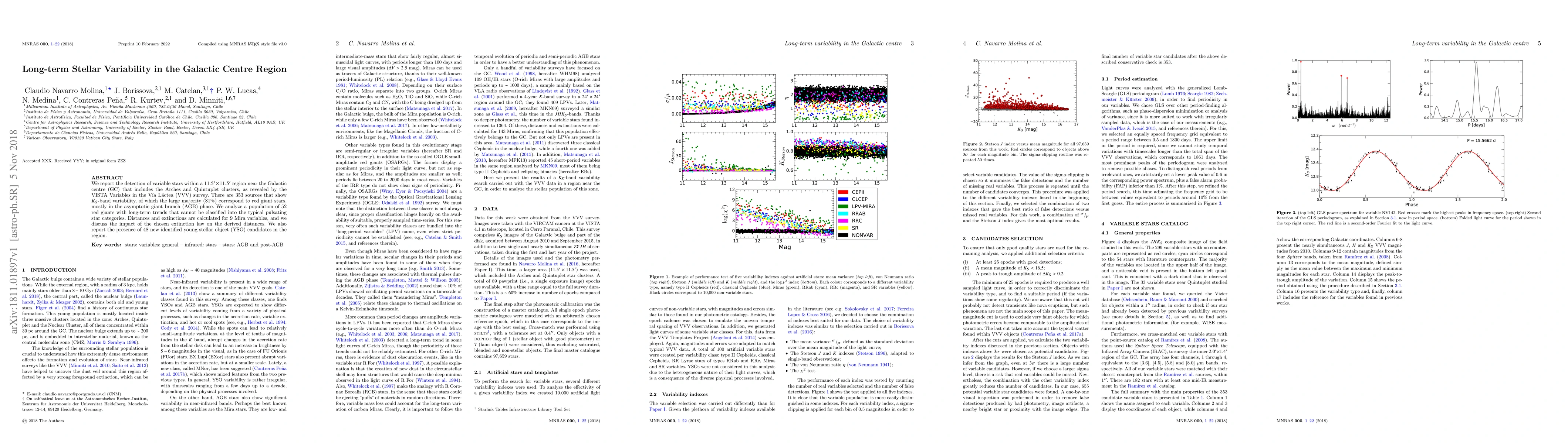 Researchers have discovered 353 variable stars in a region near the Galactic centre, including red giant stars and young stellar objects, with implications for understanding long-term stellar variability.