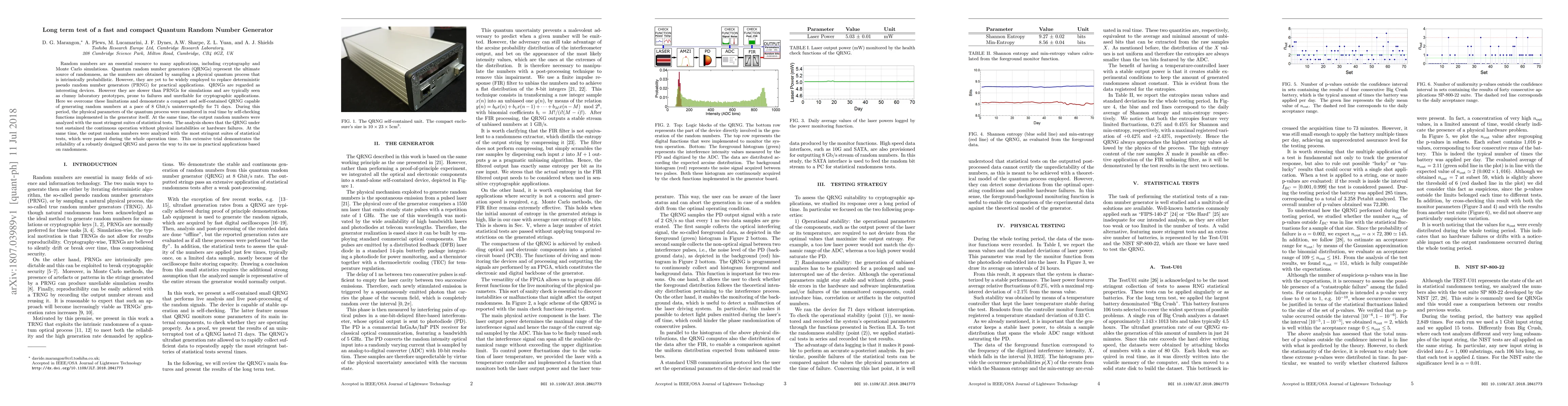 A compact and reliable Quantum Random Number Generator (QRNG) was successfully tested for 71 days at a rate of 8 Gbit/s without hardware failures or statistical anomalies, paving the way for its use in practical applications based on randomness.