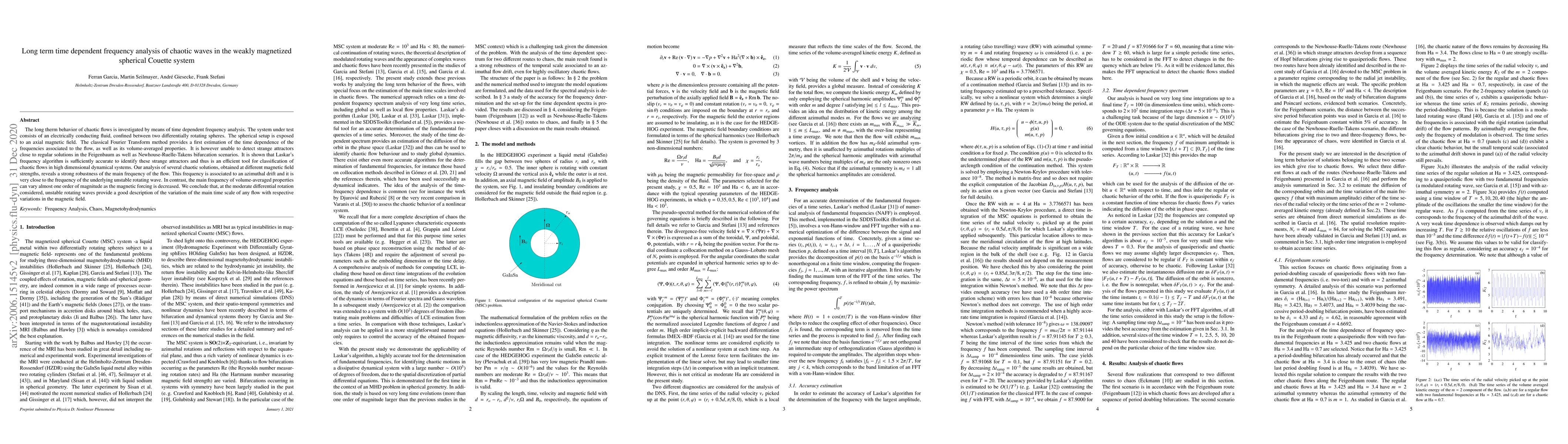 Researchers used a frequency analysis technique to study chaotic waves in a magnetized sphere system, finding that unstable rotating waves accurately describe the flow's main time scale, which is robust to changes in magnetic field strength.
