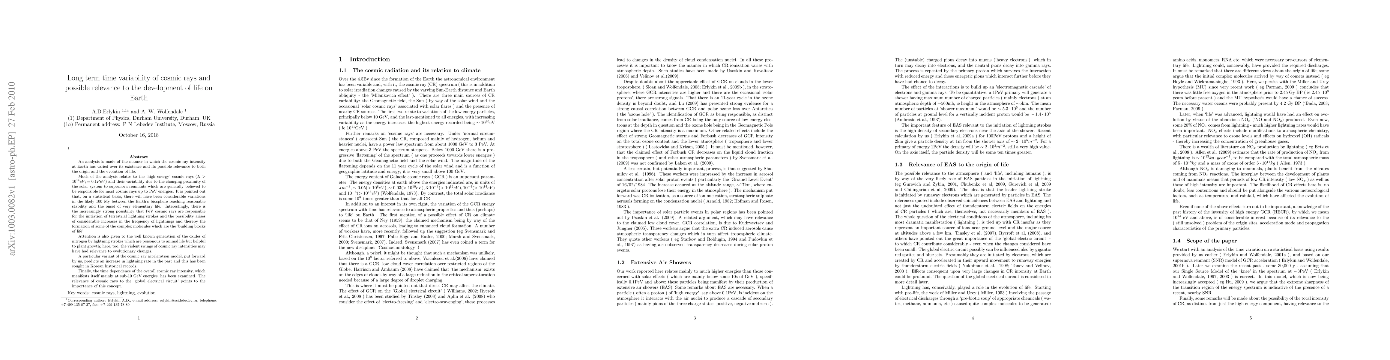 This study analyzes cosmic ray intensity over Earth's existence to understand its potential impact on life development, including possible links to lightning formation and evolutionary changes.