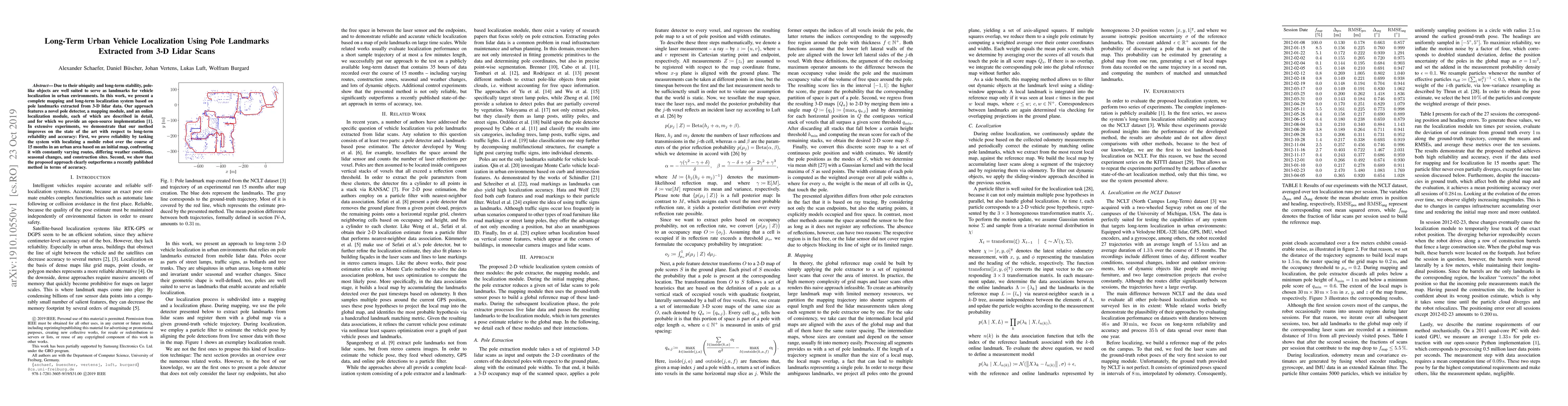 This paper presents a long-term urban vehicle localization system using pole landmarks extracted from 3-D lidar scans, featuring a novel pole detector, mapping, and localization modules. Experiments demonstrate improved reliability and accuracy over 15 months in diverse urban conditions.