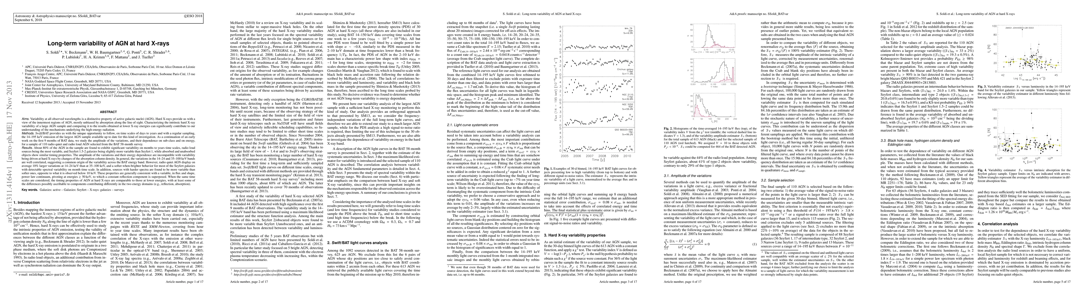 Variability at all observed wavelengths is a distinctive property of AGN. Hard X-rays provide us with a view of the innermost regions of AGN, mostly unbiased by absorption along the line of sight. Swift/BAT offers the unique opportunity to follow, on time scales of days to years and with a regular sampling, the 14-195 keV emission of the largest AGN sample available up to date for this kind of investigation. We study the amplitude of the variations, and their dependence on sub-class and on energy, for a sample of 110 radio quiet and radio loud AGN selected from the BAT 58-month survey. About 80% of the AGN in the sample are found to exhibit significant variability on months to years time scales, radio loud sources being the most variable. The amplitude of the variations and their energy dependence are incompatible with variability being driven at hard X-rays by changes of the absorption column density. In general, the variations in the 14-24 and 35-100 keV bands are well correlated, suggesting a common origin of the variability across the BAT energy band. However, radio quiet AGN display on average 10% larger variations at 14-24 keV than at 35-100 keV and a softer-when-brighter behavior for most of the Seyfert galaxies with detectable spectral variability on month time scale. In addition, sources with harder spectra are found to be more variable than softer ones. These properties are generally consistent with a variable power law continuum, in flux and shape, pivoting at energies >~ 50 keV, to which a constant reflection component is superposed. When the same time scales are considered, the timing properties of AGN at hard X-rays are comparable to those at lower energies, with at least some of the differences possibly ascribable to components contributing differently in the two energy domains (e.g., reflection, absorption).