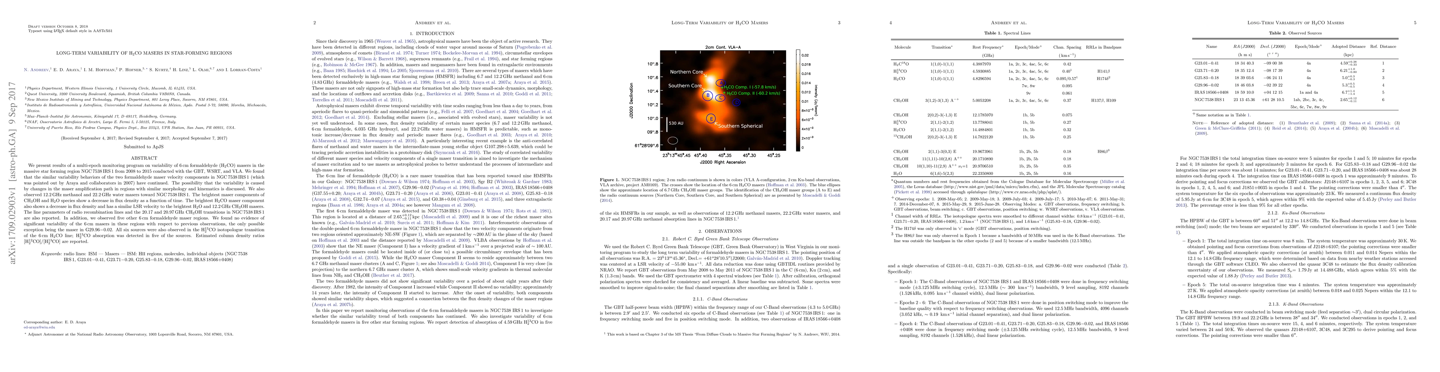 This paper reports on long-term variability in H$_2$CO masers in NGC 7538 IRS 1 from 2008 to 2015, finding continued similar variability in the two maser components. It also notes a decrease in flux density for the brightest CH$_3$OH and H$_2$O masers, with no significant variability observed in other H$_2$CO maser regions except possibly G29.96$-$0.02.