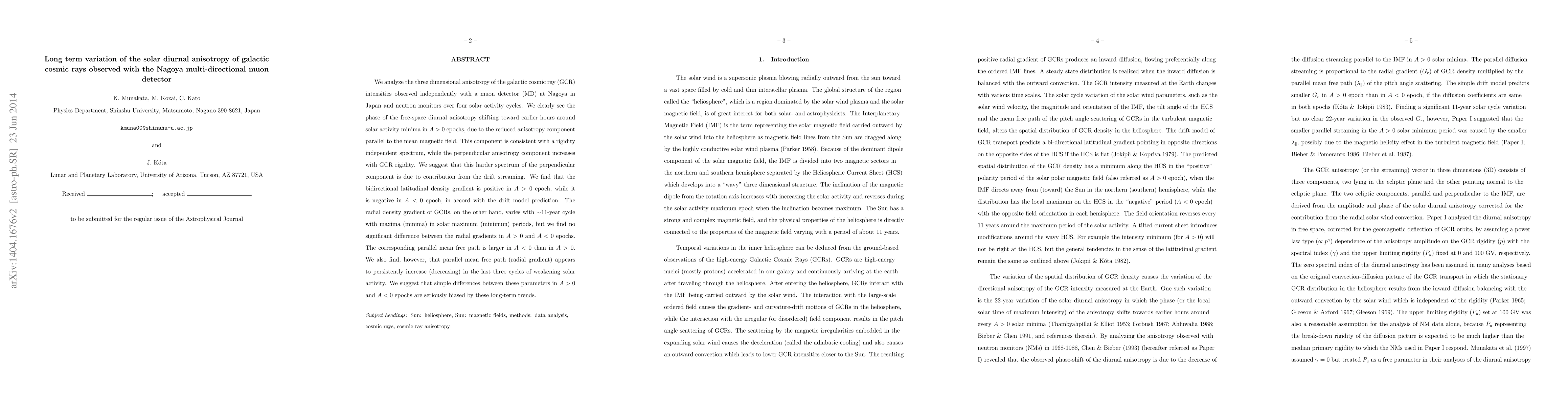 Researchers analyzed solar activity cycles to find that galactic cosmic rays show a shift in their diurnal anisotropy pattern towards earlier hours during periods of reduced solar activity. The findings suggest long-term trends may be masking the differences between positive and negative epochs.