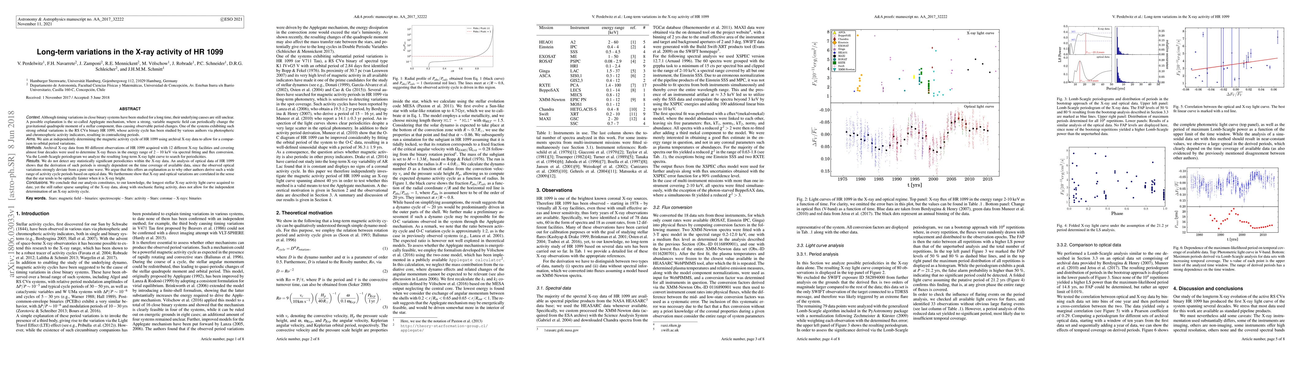 The study analyzes long-term X-ray activity variations in the RS CVn binary HR 1099 using archival data from 80 observations, but finds no statistically significant periodicities. The analysis suggests that the wide range of derived optical activity periods is due to the non-sinusoidal nature of optical data variations.