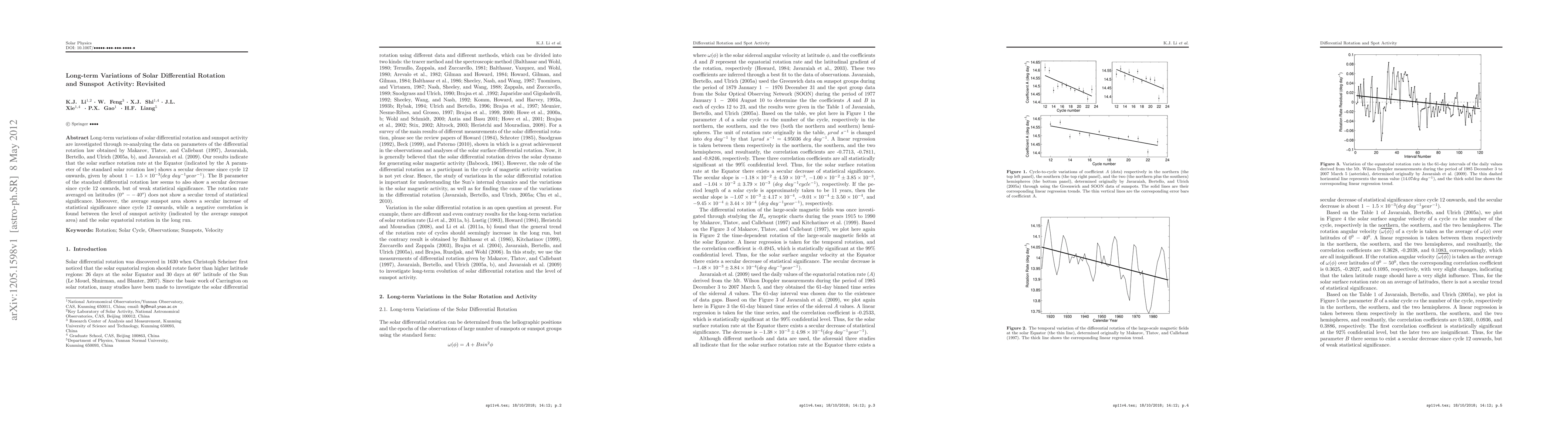 This paper revisits long-term variations in solar differential rotation and sunspot activity, finding a secular decrease in the equatorial rotation rate since cycle 12 and a significant increase in average sunspot area since the same period, with a negative correlation between sunspot activity and equatorial rotation.