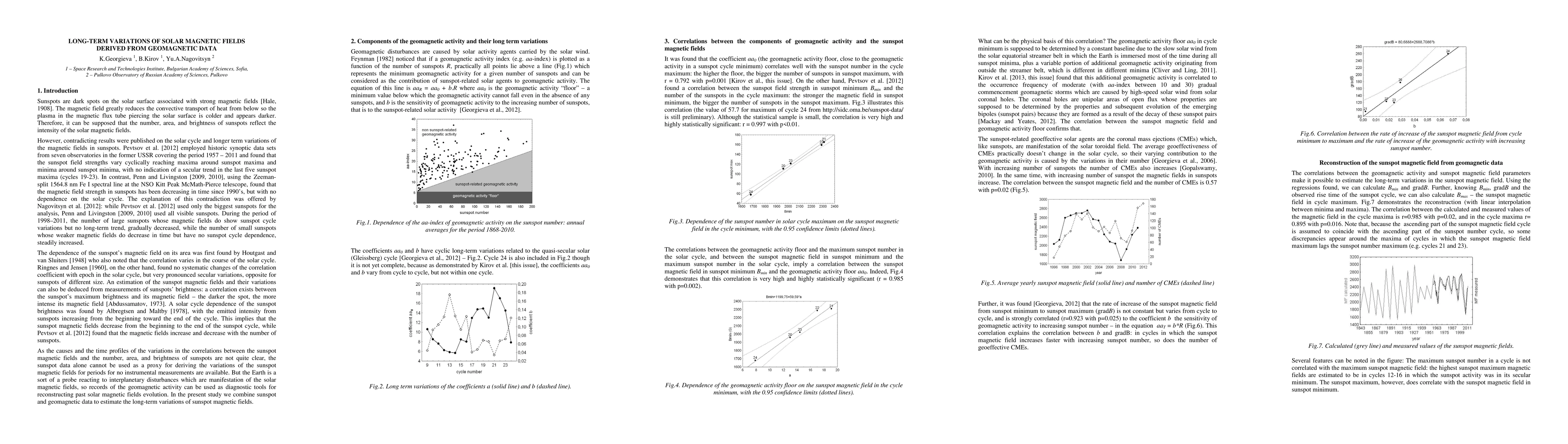 This paper investigates long-term variations of solar magnetic fields using sunspot and geomagnetic data. While sunspot parameters are often used as proxies, their correlation with solar magnetic fields is not constant, necessitating the use of geomagnetic records to reconstruct the evolution of solar magnetic fields when sunspot data alone is insufficient.