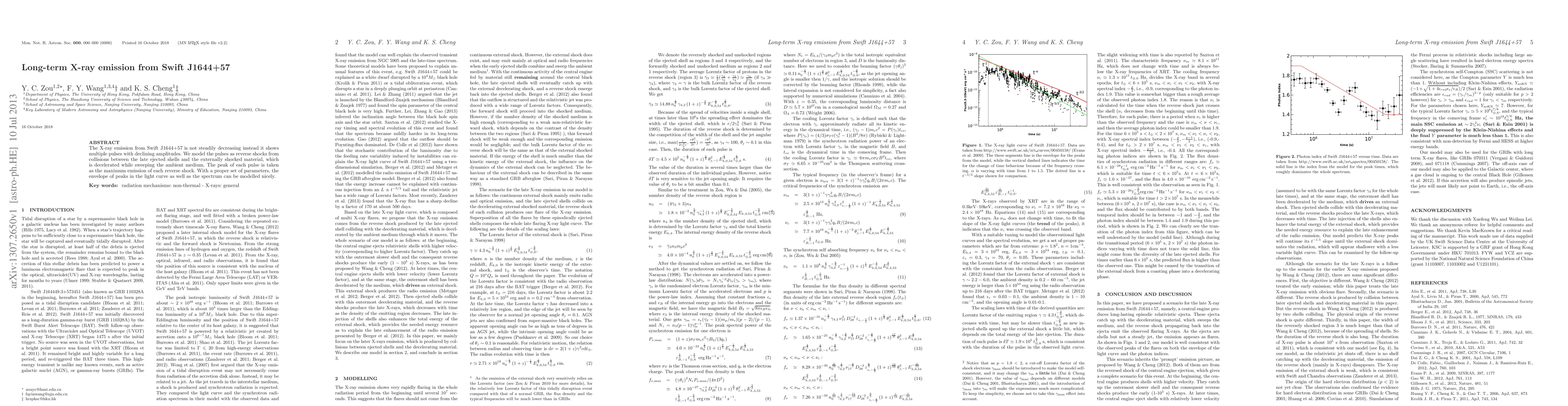 The X-ray emission from Swift J1644+57 exhibits multiple pulses rather than a steady decline, suggesting reverse shocks resulting from collisions between late ejected shells and externally shocked material. The model accurately captures the light curve and spectrum peaks.