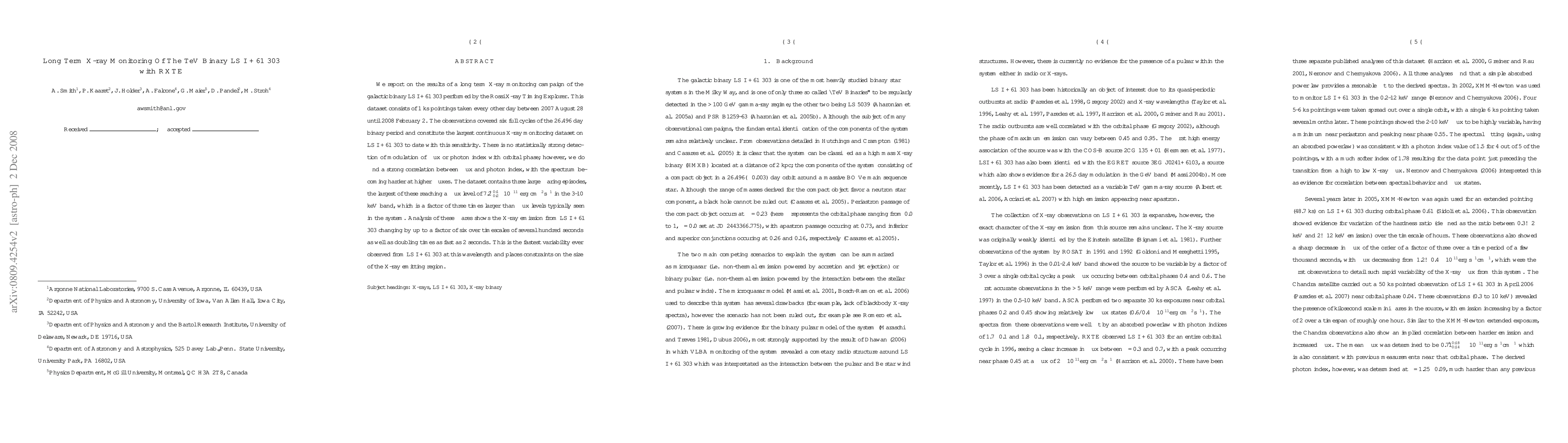 We report on the results of a long term X-ray monitoring campaign of the galactic binary LS I +61 303 performed by the Rossi X-ray Timing Explorer. This dataset consists of 1 ks pointings taken every other day between 2007 August 28 until 2008 February 2. The observations covered six full cycles of the 26.496 day binary period and constitute the largest continuous X-ray monitoring dataset on LS I +61 303 to date with this sensitivity. There is no statistically strong detection of modulation of flux or photon index with orbital phase; however, we do find a strong correlation between flux and photon index, with the spectrum becoming harder at higher fluxes. The dataset contains three large flaring episodes, the largest of these reaching a flux level of 7.2 (+0.1,-0.2)*10^-11 erg cm^-2 s^-1 in the 3-10 keV band, which is a factor of three times larger than flux levels typically seen in the system. Analysis of these flares shows the X-ray emission from LS I +61 303 changing by up to a factor of six over timescales of several hundred seconds as well as doubling times as fast as 2 seconds. This is the fastest variability ever observed from LS I +61 303 at this wavelength and places constraints on the size of the X-ray emitting region.