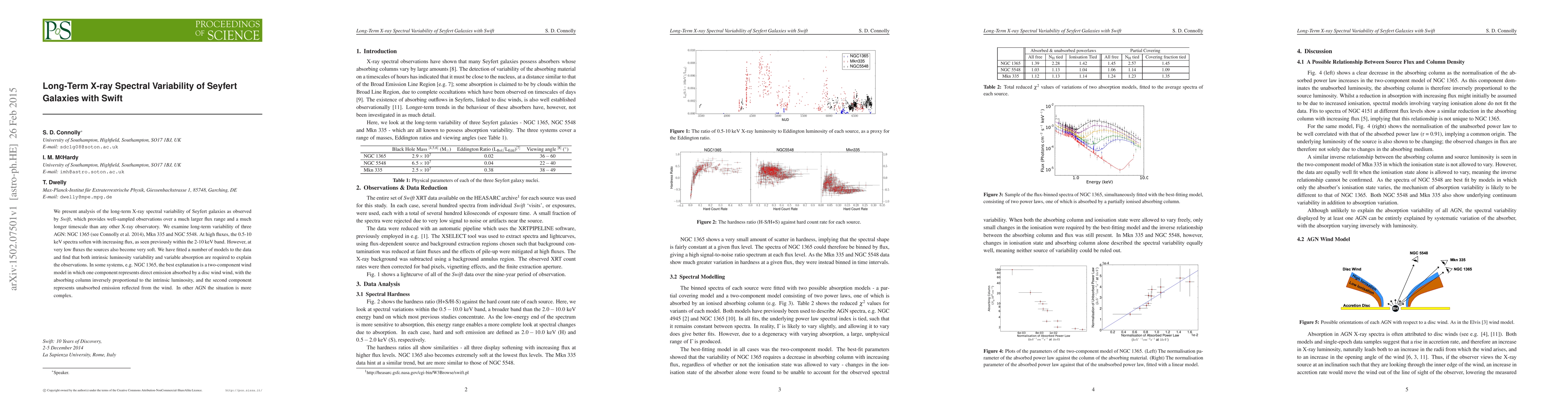 We present analysis of the long-term X-ray spectral variability of Seyfert galaxies as observed by Swift, which provides well-sampled observations over a much larger flux range and a much longer timescale than any other X-ray observatory. We examine long-term variability of three AGN: NGC 1365 (see Connolly et al. 2014), Mkn 335 and NGC 5548. At high fluxes, the 0.5-10 keV spectra soften with increasing flux, as seen previously within the 2-10 keV band. However, at very low fluxes the sources also become very soft. We have fitted a number of models to the data and find that both intrinsic luminosity variability and variable absorption are required to explain the observations. In some systems, e.g. NGC 1365, the best explanation is a two-component wind model in which one component represents direct emission absorbed by a disc wind wind, with the absorbing column inversely proportional to the intrinsic luminosity, and the second component represents unabsorbed emission reflected from the wind. In other AGN the situation is more complex.