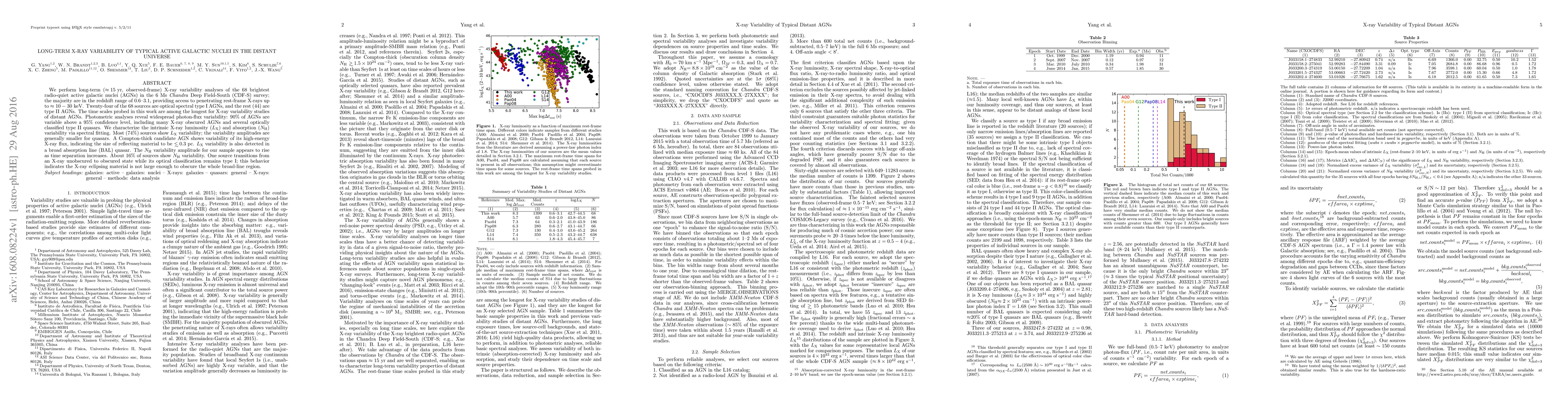 This study analyzes long-term X-ray variability in 68 distant radio-quiet active galactic nuclei (AGNs) from the Chandra Deep Field-South, finding that 90% exhibit significant photon-flux variability. Most sources show variability in intrinsic X-ray luminosity and absorption, with Compton-thick AGNs and broad absorption line quasars also displaying notable changes.