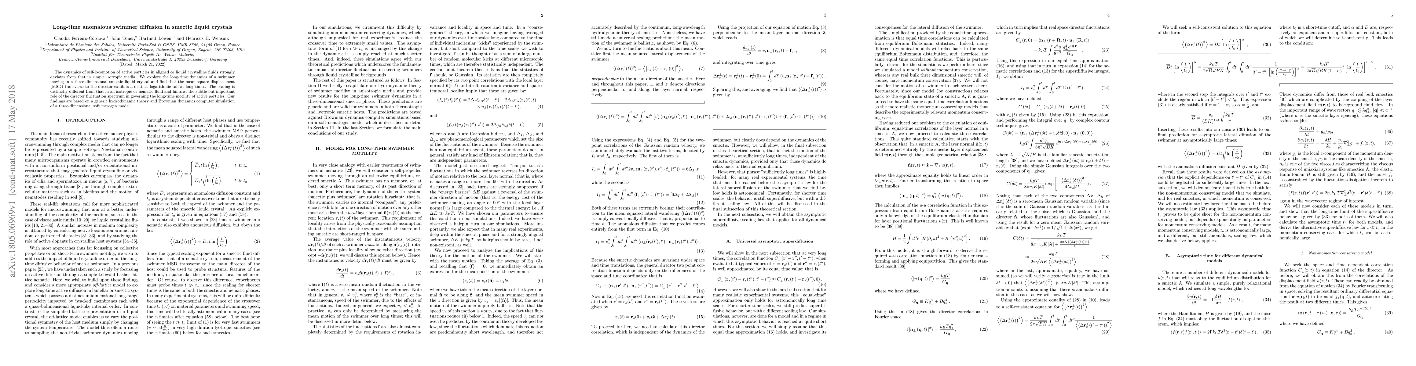 Research finds that a swimmer's motion in smectic liquid crystals deviates from simple isotropic media, with long-time movement exhibiting a distinct logarithmic tail, hinting at the role of director fluctuation spectrum in motility.