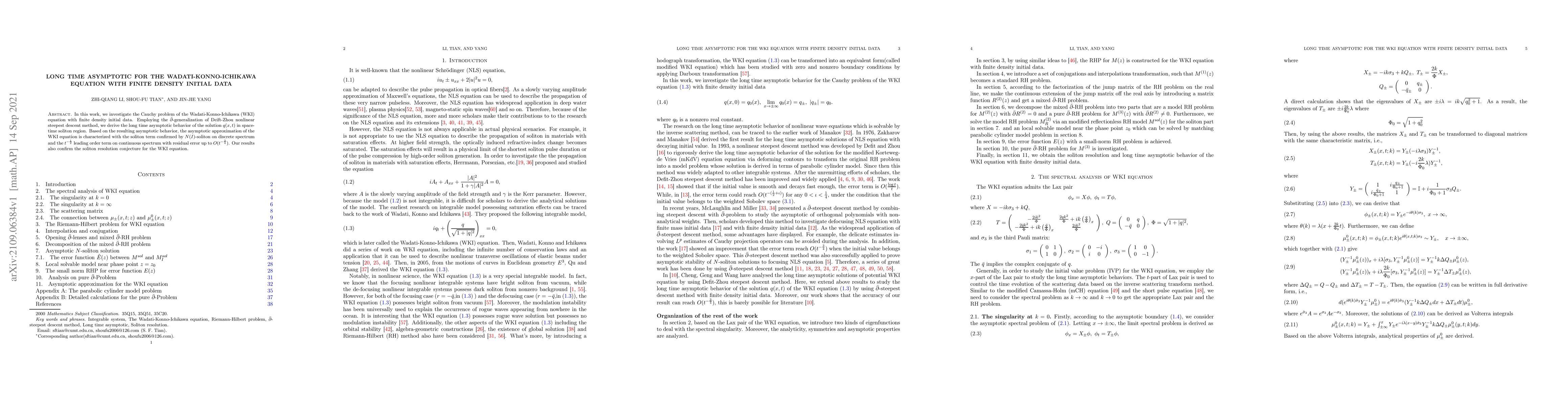 This paper investigates the long time asymptotic behavior of the Wadati-Konno-Ichikawa (WKI) equation with finite density initial data, deriving an asymptotic approximation characterized by soliton and $t^{-\frac{1}{2}}$ terms, and confirming the soliton resolution conjecture.