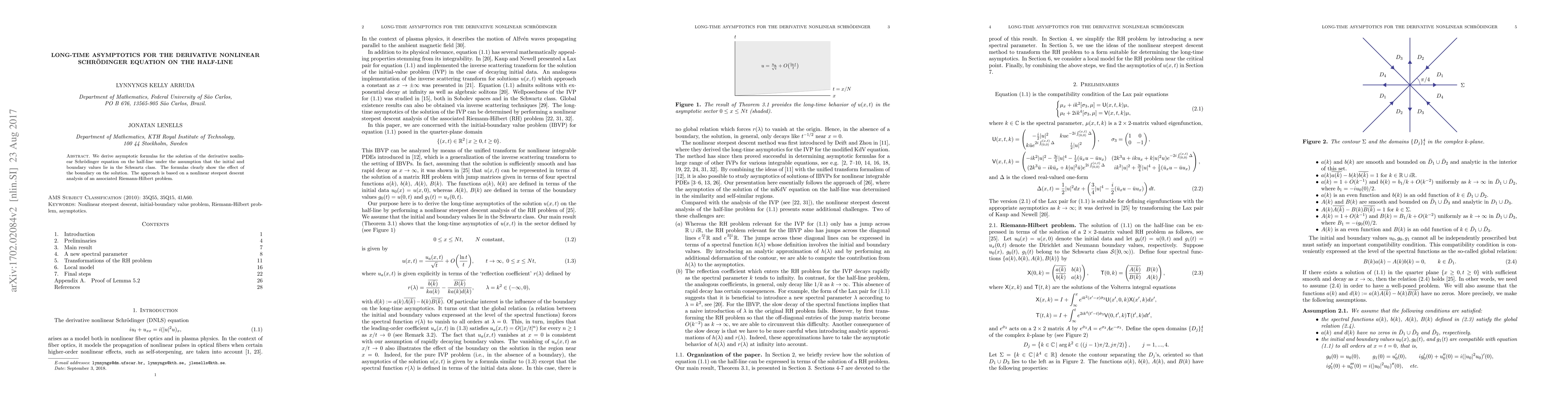 This paper derives asymptotic formulas for the solution of the derivative nonlinear Schrödinger equation on the half-line, demonstrating the influence of the boundary through a nonlinear steepest descent analysis of a related Riemann-Hilbert problem. The study assumes initial and boundary values in the Schwartz class.