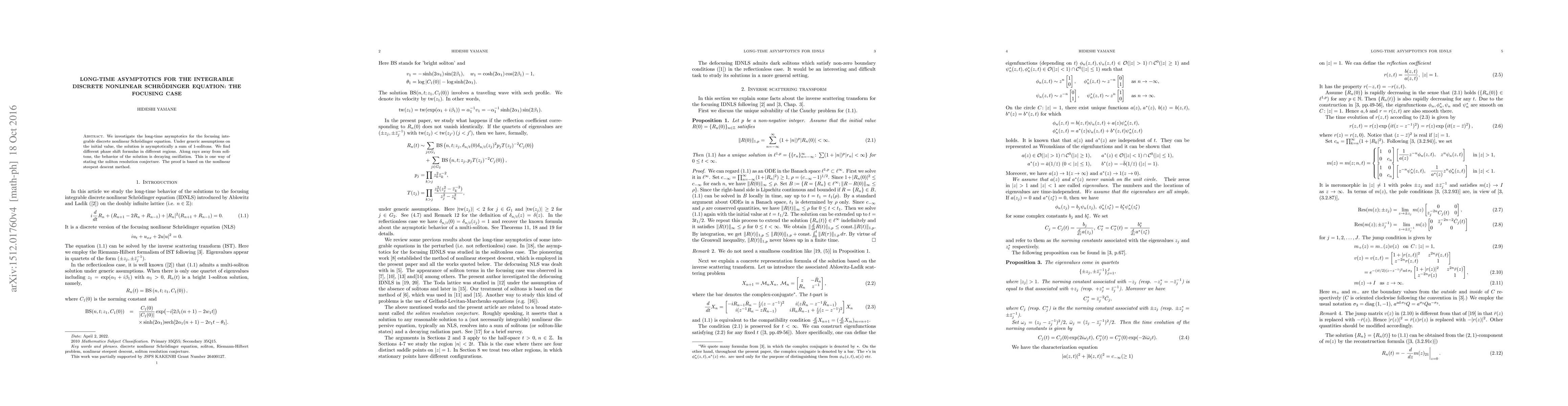 This paper studies the long-term behavior of the focusing integrable discrete nonlinear Schrödinger equation, showing that solutions asymptotically consist of a sum of 1-solitons with varying phase shifts. The proof employs the nonlinear steepest descent method, supporting the soliton resolution conjecture.