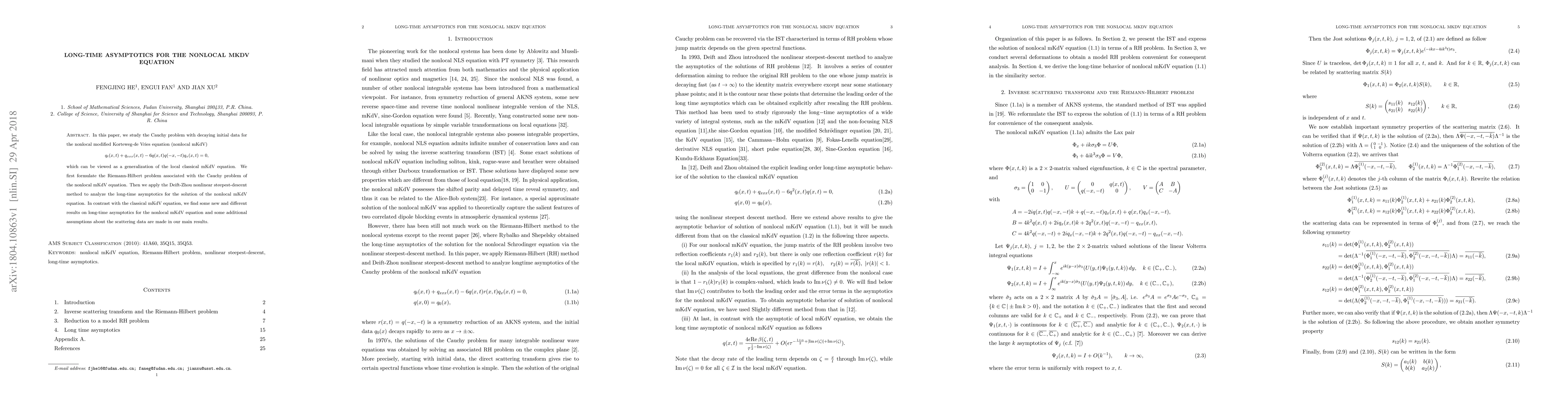 This paper investigates the long-time asymptotics of the nonlocal modified Korteweg-de Vries equation using the Riemann-Hilbert problem and the Deift-Zhou method, revealing new results distinct from the classical mKdV equation, with additional assumptions on scattering data.