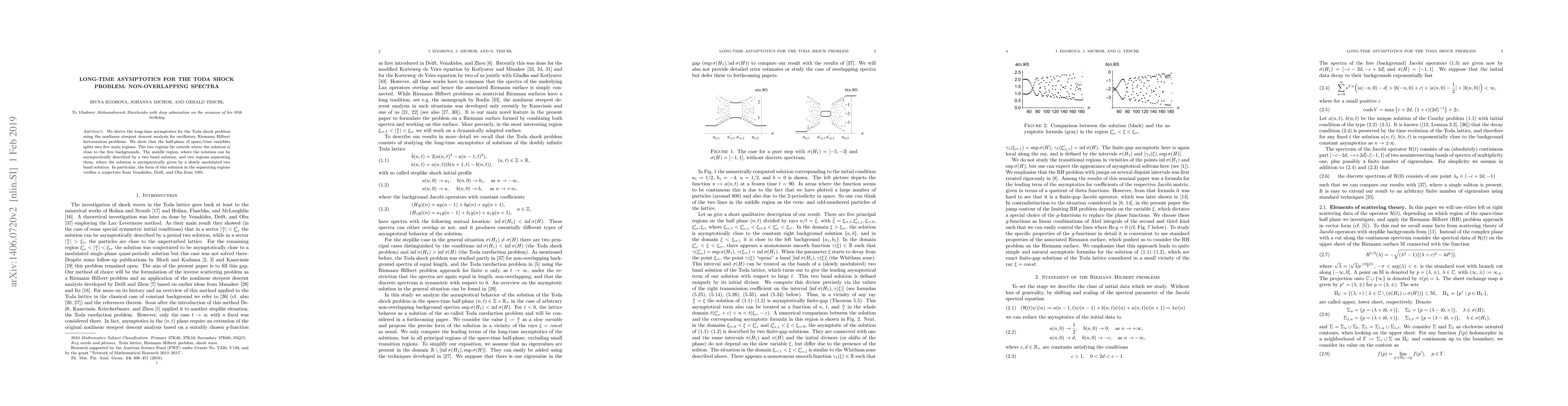 We derive the long-time asymptotics for the Toda shock problem using the nonlinear steepest descent analysis for oscillatory Riemann--Hilbert factorization problems. We show that the half plane of space/time variables splits into five main regions: The two regions far outside where the solution is close to free backgrounds. The middle region, where the solution can be asymptotically described by a two band solution, and two regions separating them, where the solution is asymptotically given by a slowly modulated two band solution. In particular, the form of this solution in the separating regions verifies a conjecture from Venakides, Deift, and Oba from 1991.