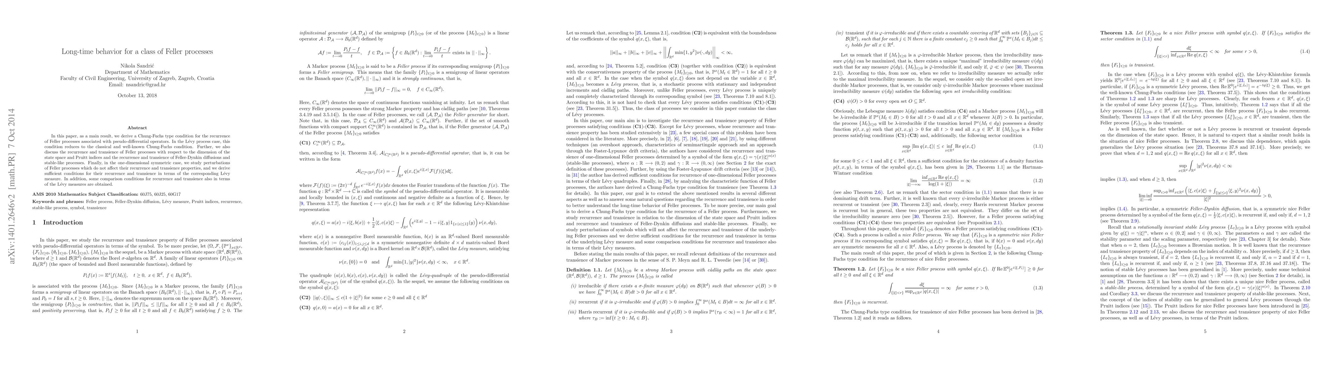 This paper establishes a Chung-Fuchs type condition for the recurrence of Feller processes linked to pseudo-differential operators, reducing to the classical condition in the Lévy process case. It also examines the recurrence and transience of these processes concerning state space dimension and Pruitt indices, and explores perturbations in one-dimensional symmetric cases that preserve recurrence and transience properties.