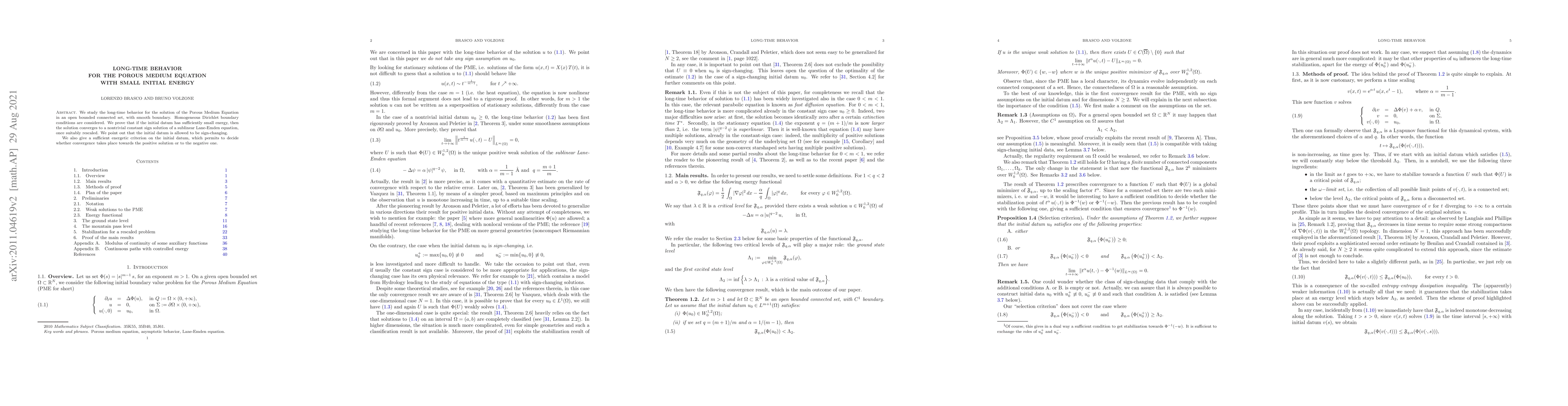 The solution to the Porous Medium Equation converges to a nontrivial constant sign solution of a sublinear Lane-Emden equation with sufficiently small initial energy, regardless of whether the initial datum is positive or negative.