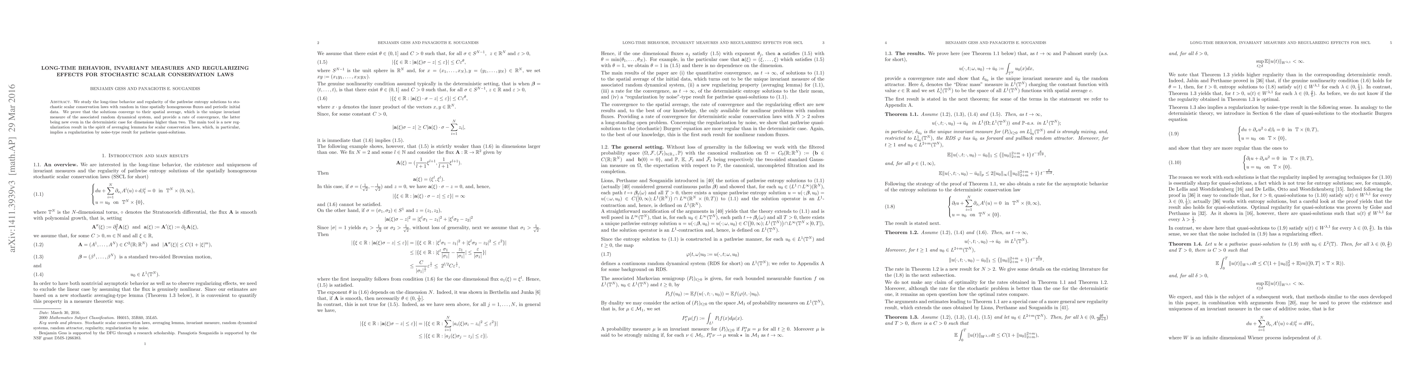 This paper investigates the long-term behavior and regularity of entropy solutions to stochastic scalar conservation laws, demonstrating convergence to the spatial average, which is the unique invariant measure. A novel regularization result is introduced, providing a rate of convergence even for higher-dimensional deterministic cases.