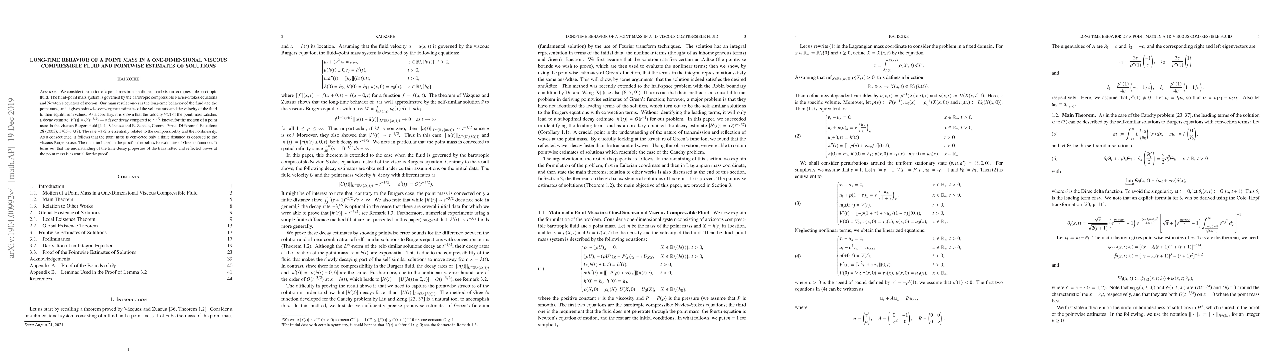 This paper studies the long-term behavior of a point mass in a one-dimensional viscous compressible fluid, showing that the fluid's velocity and volume ratio converge to equilibrium values. The point mass's velocity decays faster than previously known rates, specifically as $O(t^{-3/2})$, due to compressibility and nonlinearity effects.