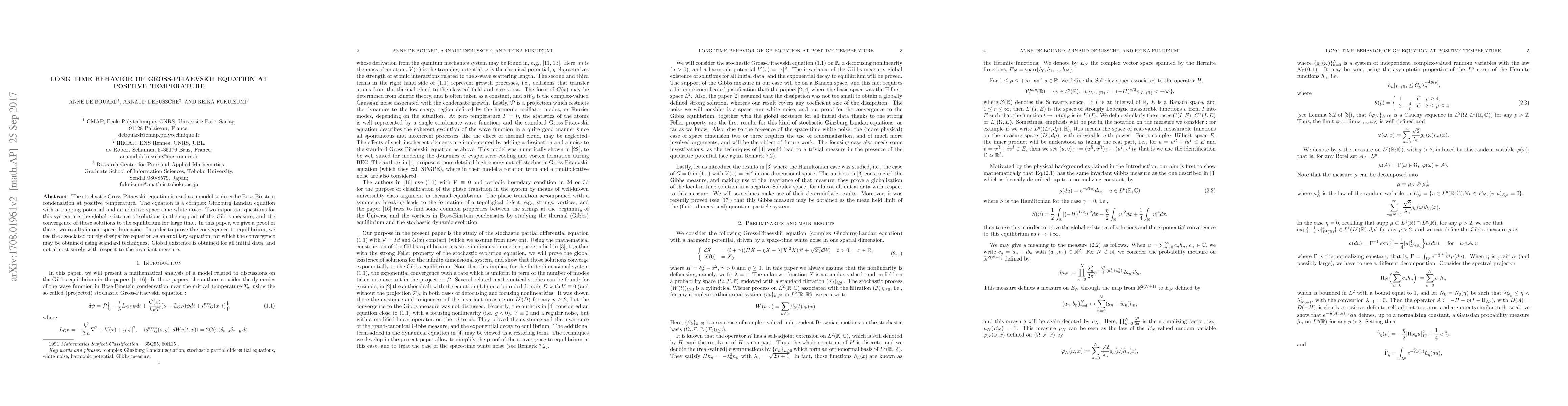 This paper investigates the long-term behavior of the stochastic Gross-Pitaevskii equation, which models Bose-Einstein condensation at positive temperatures. It proves the global existence of solutions and their convergence to equilibrium in one spatial dimension.