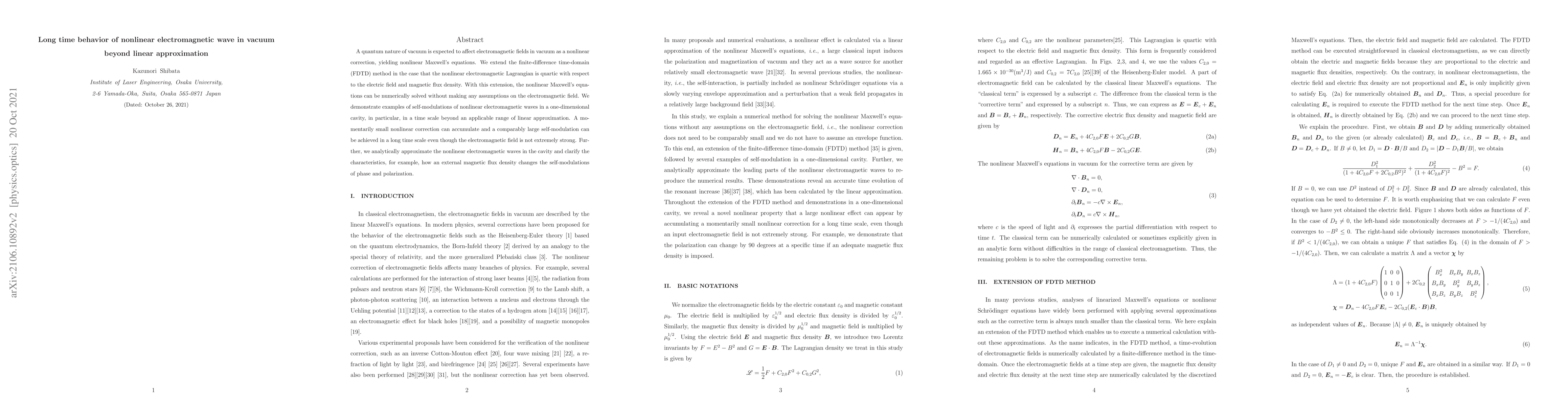 Researchers extend finite-difference time-domain method to solve nonlinear Maxwell's equations beyond linear approximation, demonstrating self-modulation of electromagnetic waves in a vacuum over long time scales.