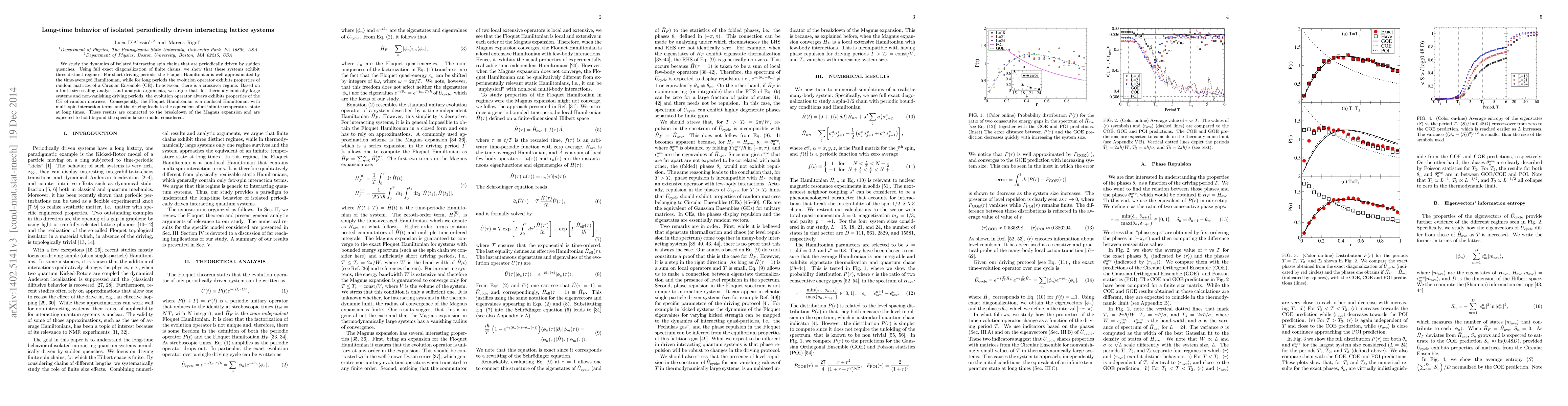 Researchers study isolated spin chains driven by sudden quenches, finding three regimes: a short-driving period approximation, a long-period regime exhibiting properties of random matrices, and a crossover regime; they conclude that large systems will always exhibit CE random matrix properties, leading to nonlocal interactions and an equivalent infinite temperature state.