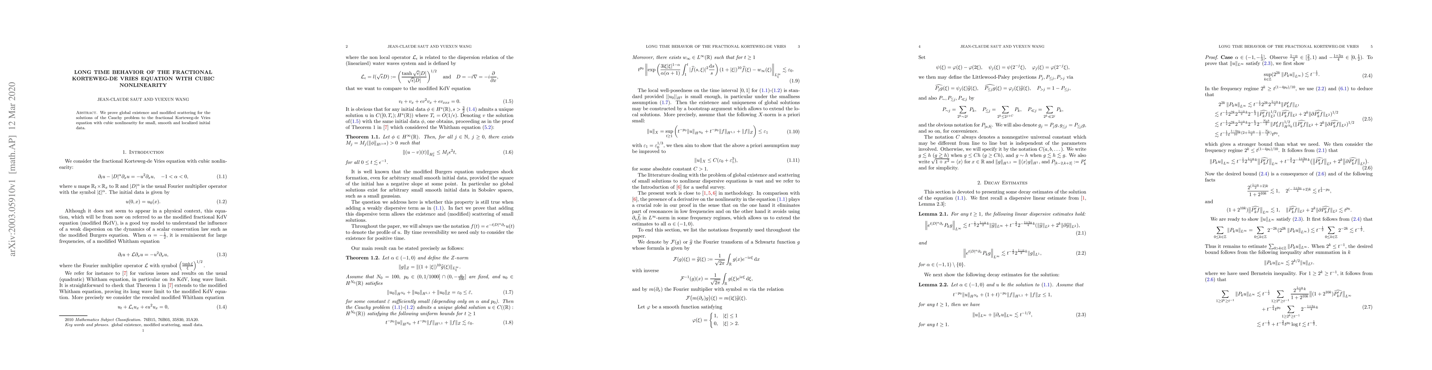 Summary: This paper proves global existence and modified scattering for solutions to the fractional Korteweg-de Vries equation with cubic nonlinearity, demonstrating the behavior of small, smooth, and localized initial data over time. The results establish the long-term dynamics of the equation.