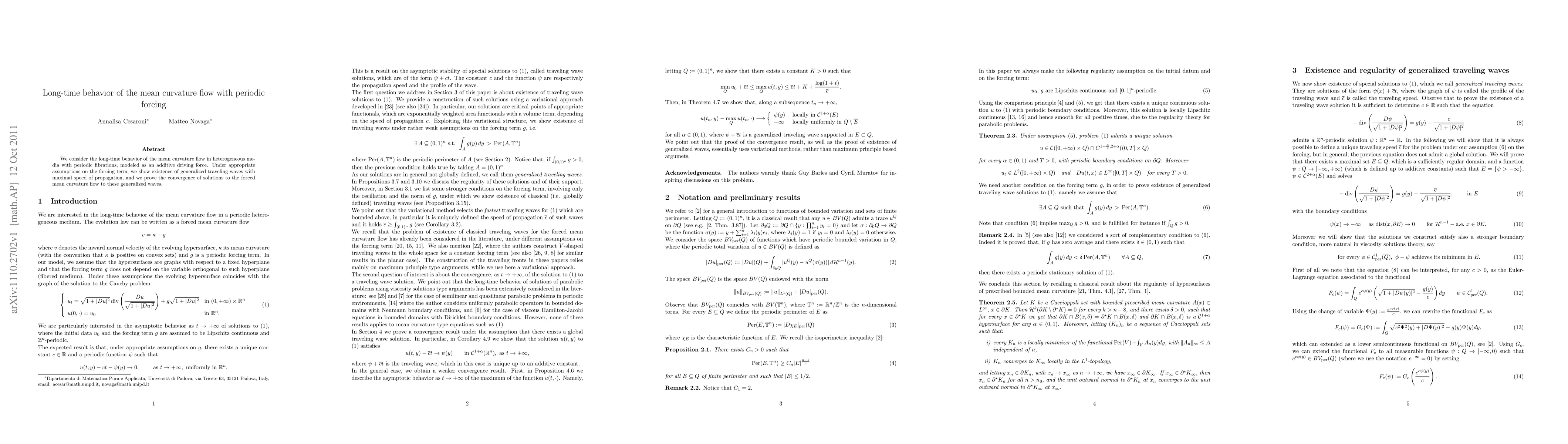 This paper investigates the long-term dynamics of mean curvature flow influenced by periodic external forces, demonstrating the existence of generalized traveling waves and proving convergence of solutions to these waves under specific conditions.
