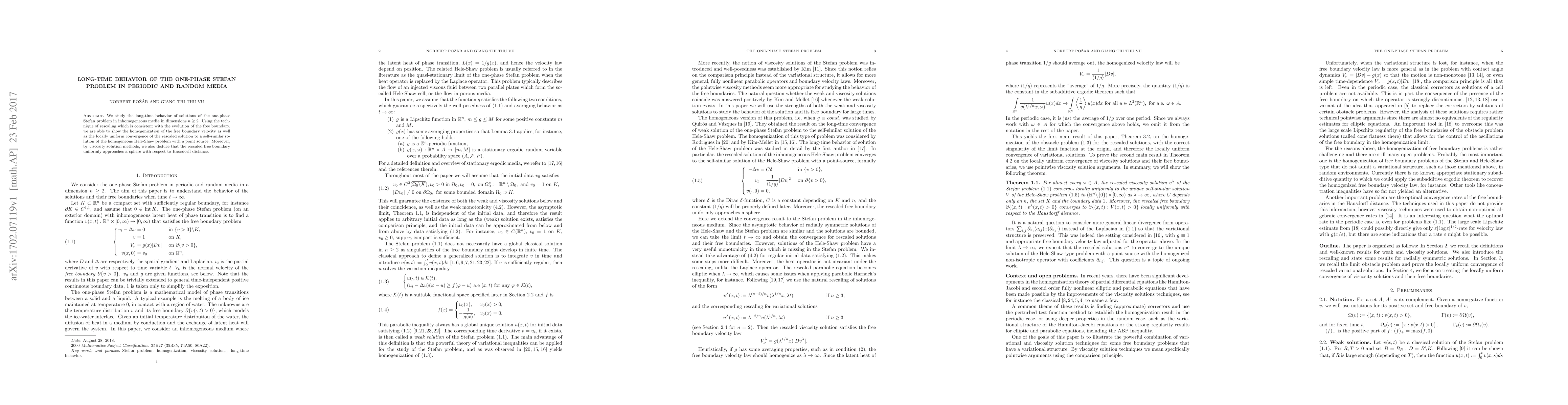 The paper investigates the long-time behavior of solutions to a specific problem in physics, finding that inhomogeneous media tend towards a self-similar solution with a uniform free boundary shape.