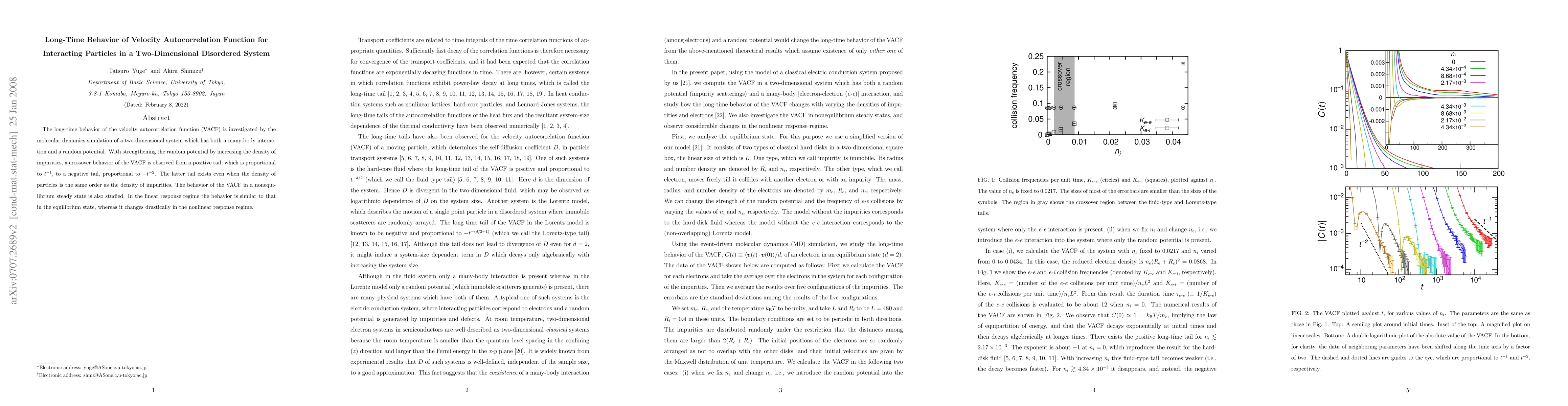 This study investigates the long-time behavior of the velocity autocorrelation function (VACF) in a two-dimensional disordered system with many-body interactions and a random potential. The simulation reveals a crossover from a positive t^{-1} tail to a negative t^{-2} tail as the density of impurities increases, even when particle density equals impurity density. The VACF behavior changes significantly in nonequilibrium steady states, especially in the nonlinear response regime.