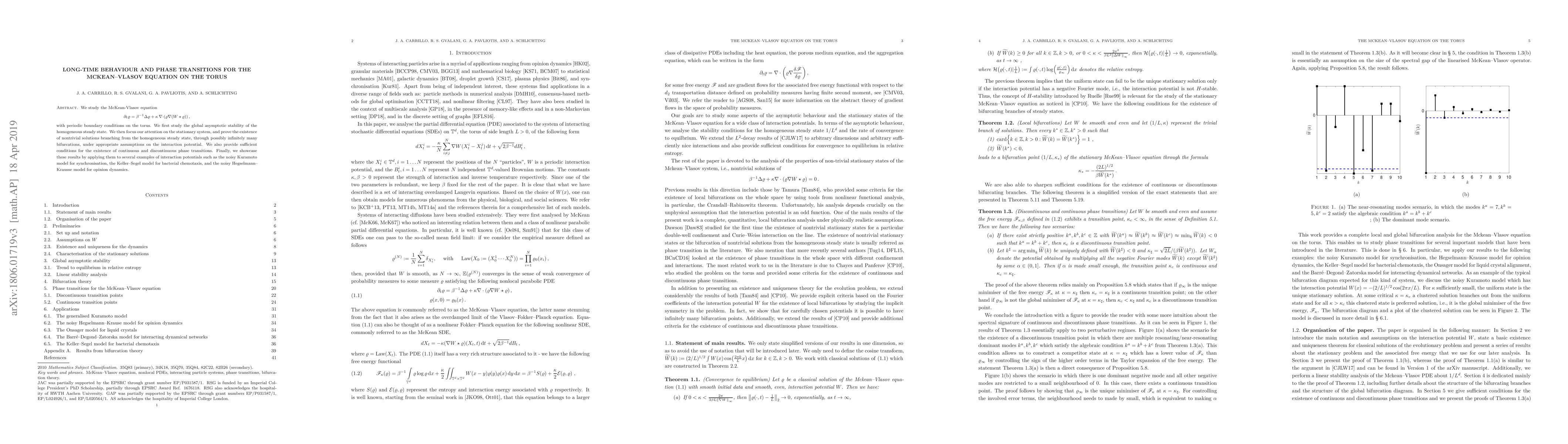We study the McKean-Vlasov equation \[ \partial_t \varrho= \beta^{-1} \Delta \varrho + \kappa \nabla \cdot (\varrho \nabla (W \star \varrho)) \, , \] with periodic boundary conditions on the torus. We first study the global asymptotic stability of the homogeneous steady state. We then focus our attention on the stationary system, and prove the existence of nontrivial solutions branching from the homogeneous steady state, through possibly infinitely many bifurcations, under appropriate assumptions on the interaction potential. We also provide sufficient conditions for the existence of continuous and discontinuous phase transitions. Finally, we showcase these results by applying them to several examples of interaction potentials such as the noisy Kuramoto model for synchronisation, the Keller--Segel model for bacterial chemotaxis, and the noisy Hegselmann--Krausse model for opinion dynamics.