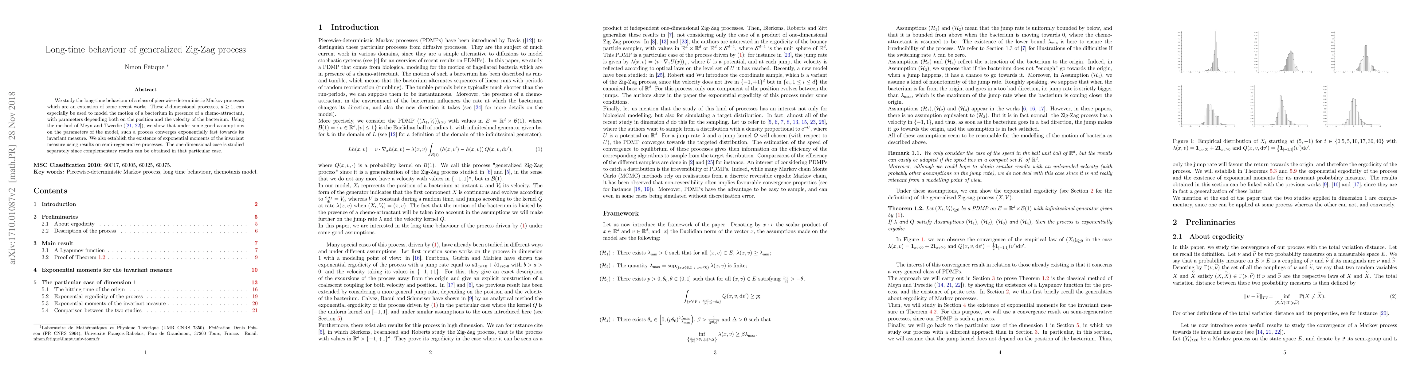 Researchers studied a class of processes that model bacterial motion in response to a chemo-attractant, finding they converge exponentially fast towards their invariant measure under certain conditions.