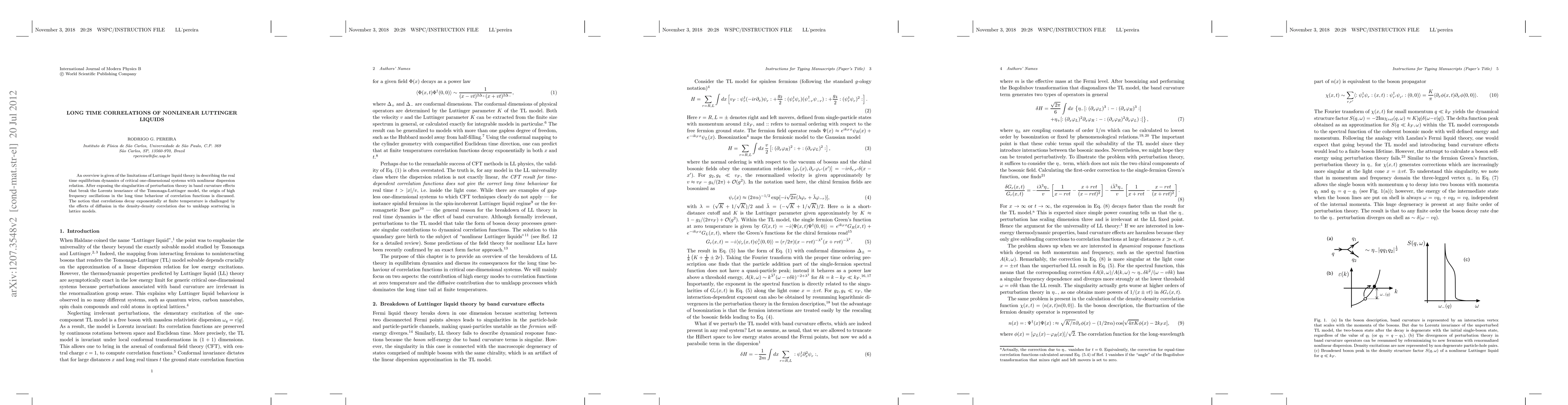 An overview is given of the limitations of Luttinger liquid theory in describing the real time equilibrium dynamics of critical one-dimensional systems with nonlinear dispersion relation. After exposing the singularities of perturbation theory in band curvature effects that break the Lorentz invariance of the Tomonaga-Luttinger model, the origin of high frequency oscillations in the long time behaviour of correlation functions is discussed. The notion that correlations decay exponentially at finite temperature is challenged by the effects of diffusion in the density-density correlation due to umklapp scattering in lattice models.