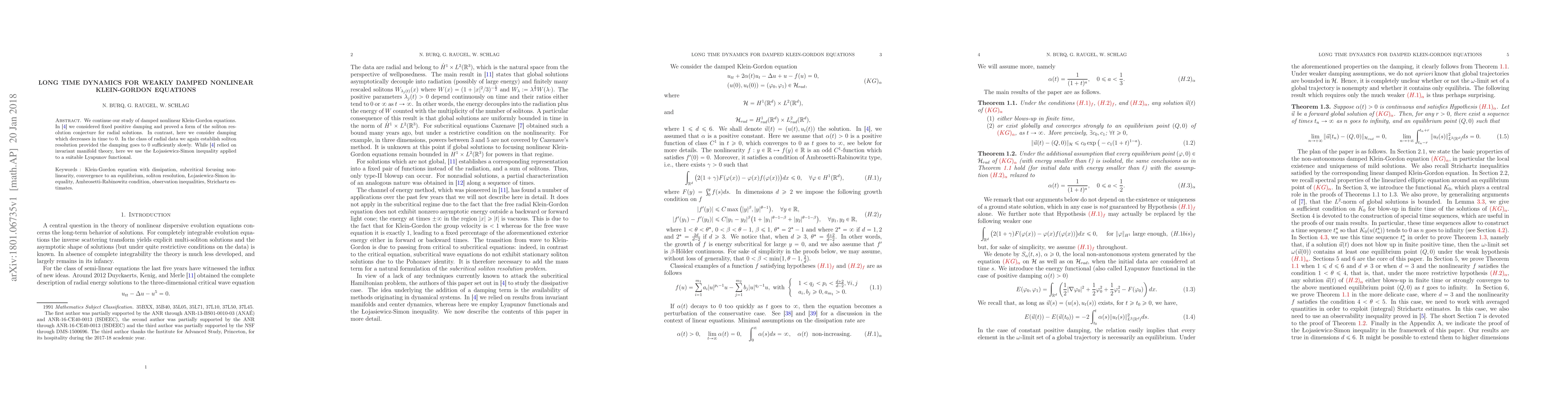 We continue our study of damped nonlinear Klein-Gordon equations. In our previous work we considered fixed positive damping and proved a form of the soliton resolution conjecture for radial solutions. In contrast, here we consider damping which decreases in time to 0. In the class of radial data we again establish soliton resolution provided the damping goes to 0 sufficiently slowly. While our previous work relied on invariant manifold theory, here we use the Lojasiewicz-Simon inequality applied to a suitable Lyapunov functional.