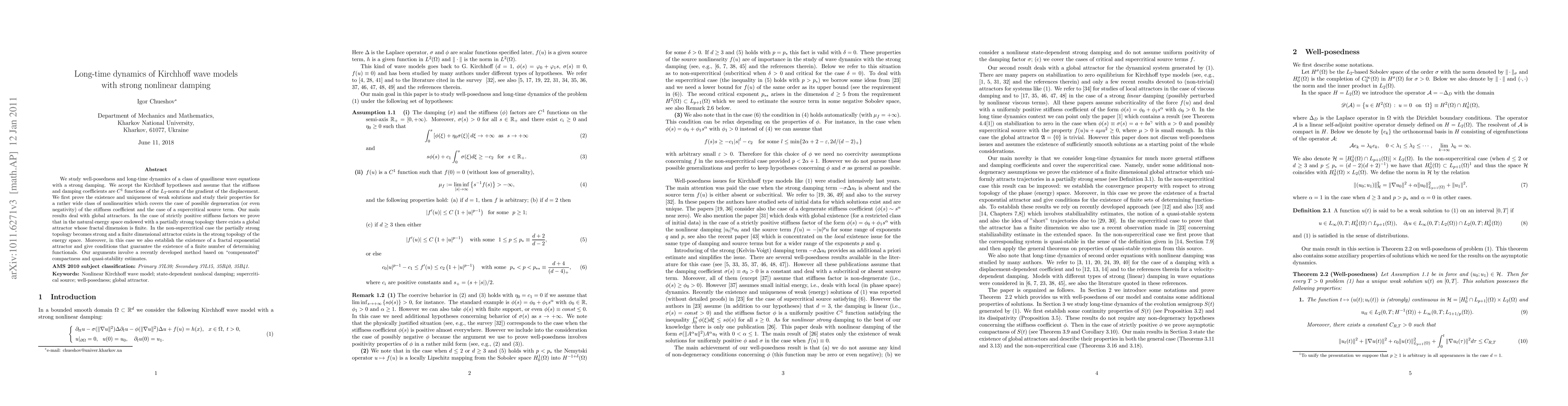 We study well-posedness and long-time dynamics of a class of quasilinear wave equations with a strong damping. We accept the Kirchhoff hypotheses and assume that the stiffness and damping coefficients are $C^1$ functions of the $L_2$-norm of the gradient of the displacement. We first prove the existence and uniqueness of weak solutions and study their properties for a rather wide class of nonlinearities which covers the case of possible degeneration (or even negativity) of the stiffness coefficient and the case of a supercritical source term. Our main results deal with global attractors. In the case of strictly positive stiffness factors we prove that in the natural energy space endowed with a partially strong topology there exists a global attractor whose fractal dimension is finite. In the non-supercritical case the partially strong topology becomes strong and a finite dimensional attractor exists in the strong topology of the energy space. Moreover, in this case we also establish the existence of a fractal exponential attractor and give conditions that guarantee the existence of a finite number of determining functionals. Our arguments involve a recently developed method based on "compensated" compactness and quasi-stability estimates.
