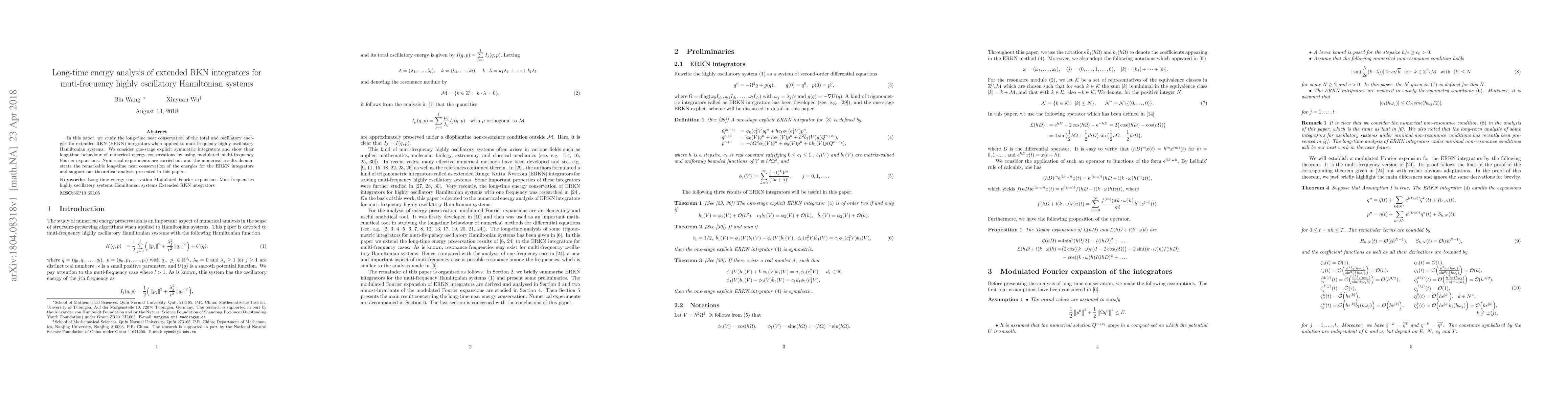 This paper investigates the long-term energy conservation properties of extended RKN (ERKN) integrators for multi-frequency highly oscillatory Hamiltonian systems, demonstrating their effectiveness through modulated multi-frequency Fourier expansions and numerical experiments. The results show significant long-term near conservation of both total and oscillatory energies.