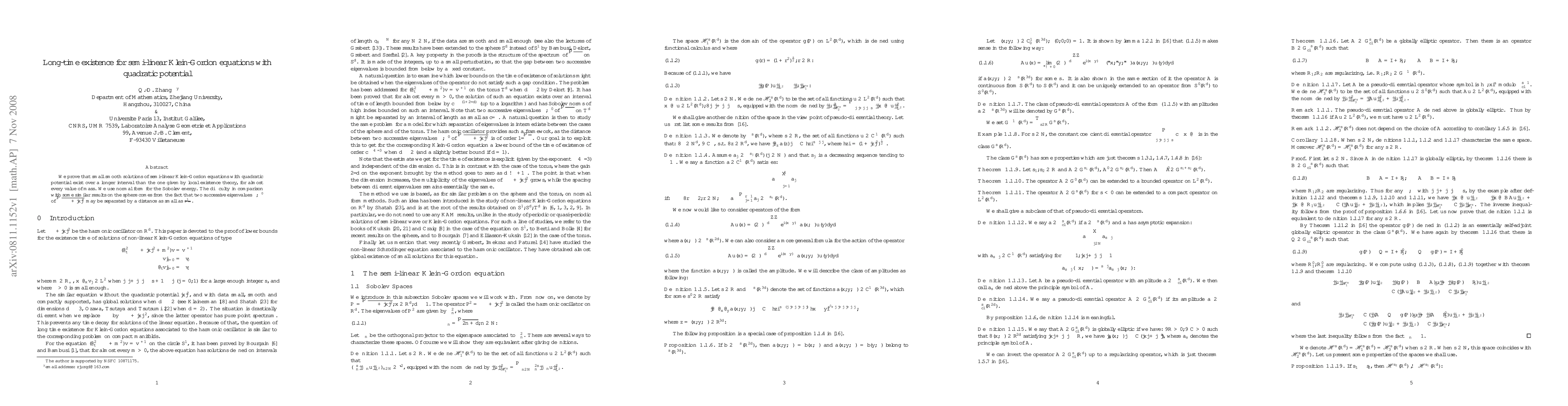 Summary: This paper demonstrates the extended existence of small smooth solutions to semi-linear Klein-Gordon equations with quadratic potential, surpassing local existence bounds, and employs the normal form for Sobolev energy to address the unique eigenvalue spacing challenges.