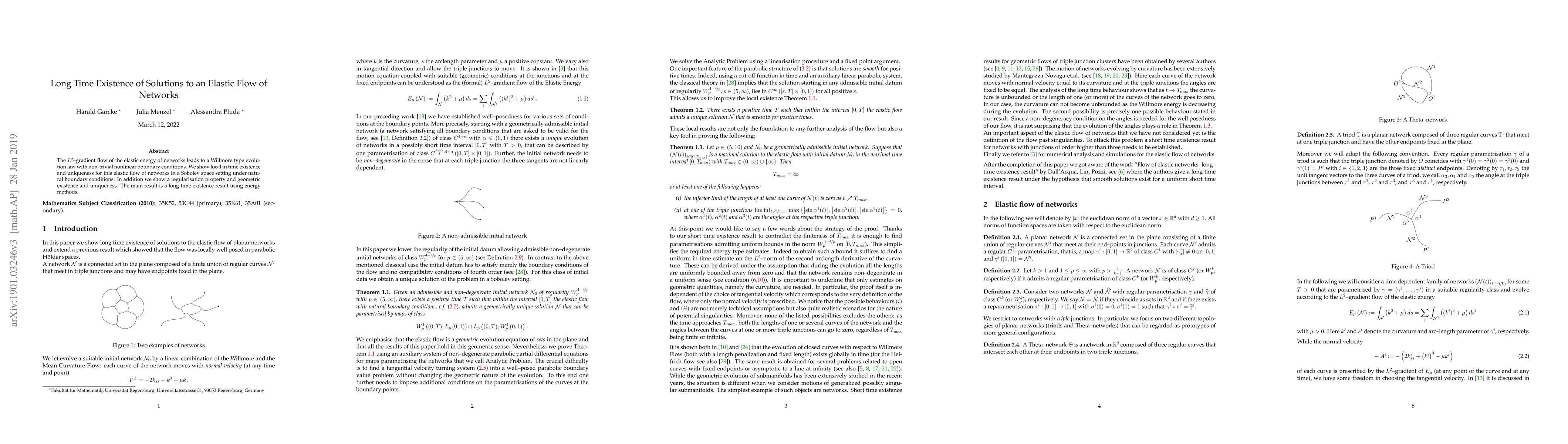 This paper proves the long time existence of solutions to an elastic flow of networks, showing local in time existence and uniqueness for a specific evolution law with natural boundary conditions.