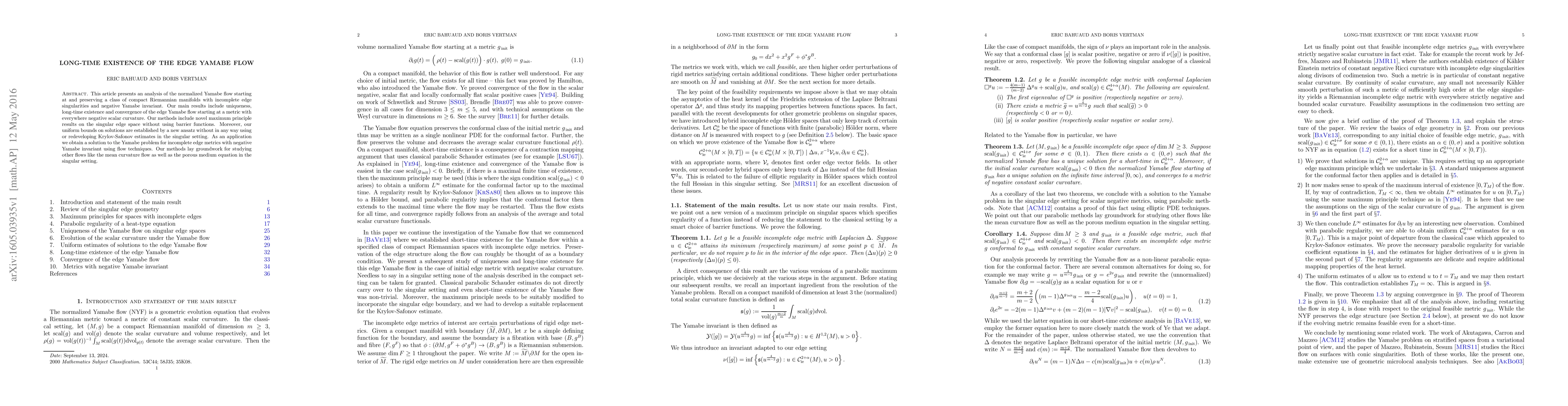 This paper analyzes the normalized Yamabe flow on compact Riemannian manifolds with incomplete edge singularities and negative Yamabe invariant, proving its uniqueness, long-time existence, and convergence. Novel maximum principles and a new ansatz establish uniform bounds without relying on Krylov-Safonov estimates, leading to a solution for the Yamabe problem in this setting.