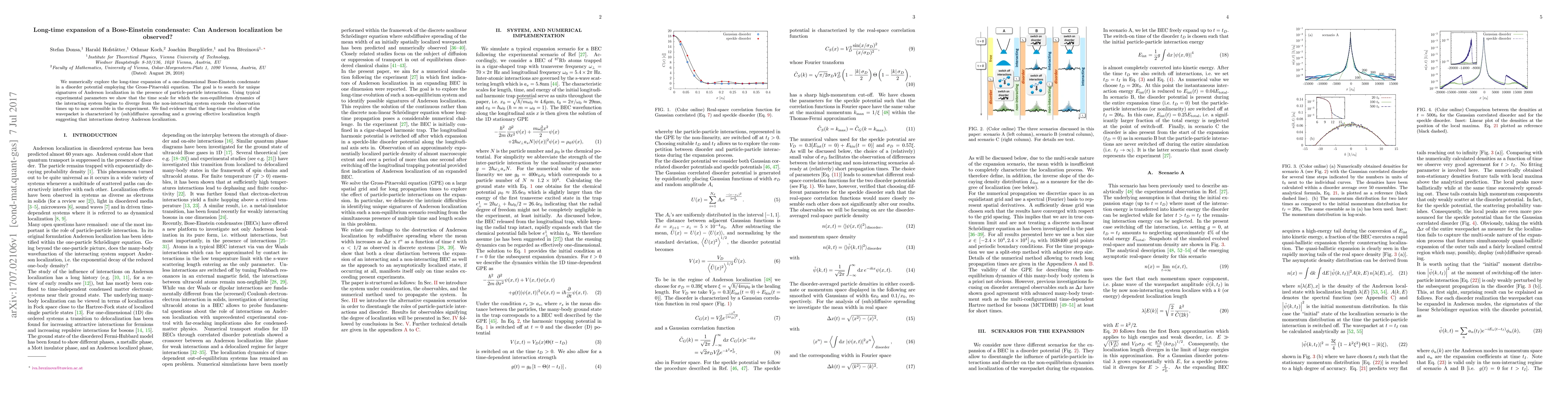 This paper numerically investigates the long-term expansion of a one-dimensional Bose-Einstein condensate in a disordered potential, aiming to detect signs of Anderson localization amidst particle interactions. Results suggest that interactions disrupt Anderson localization, as evidenced by (sub)diffusive spreading and an increasing effective localization length.