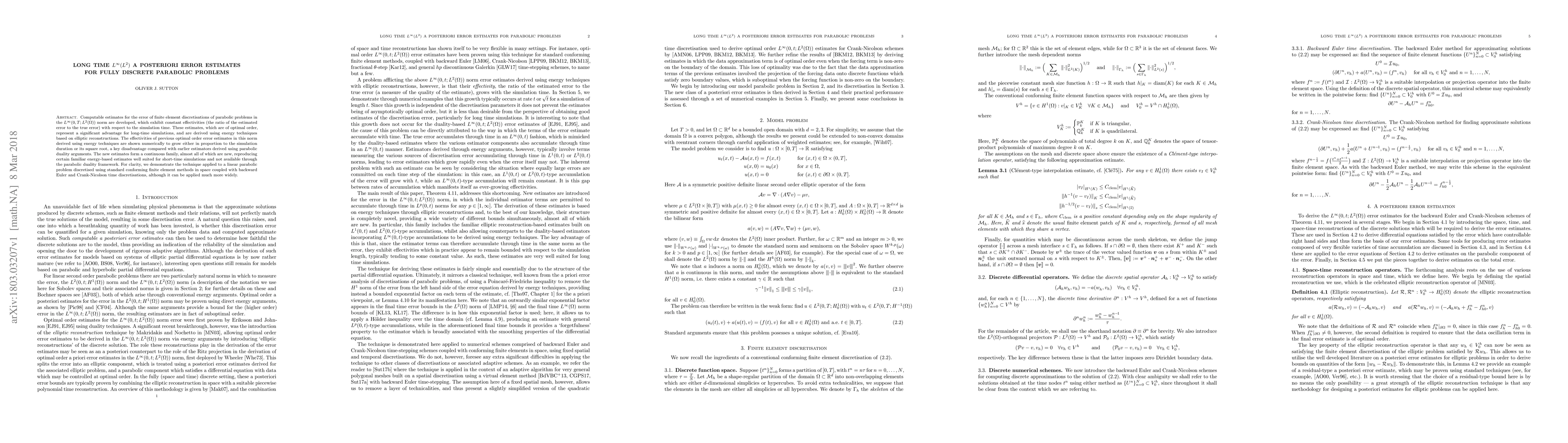 This paper develops optimal order computable estimates for finite element discretizations of parabolic problems in the $L^\infty(0,T; L^2)$ norm, showing constant effectivities over time, a significant improvement over previous methods that degrade with simulation time. The new estimates are derived using energy techniques and are demonstrated for linear parabolic problems using standard conforming finite element methods.