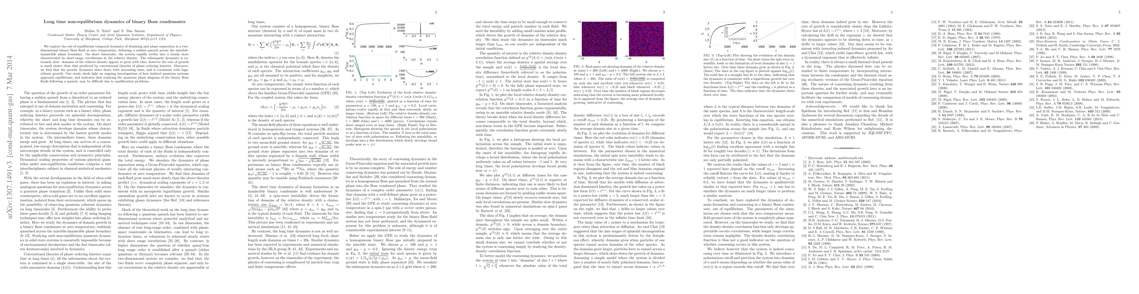 This study investigates the slow, non-equilibrium dynamics of phase separation in a two-dimensional binary Bose condensate after a sudden quench. While short-term behavior shows rapid settling into a steady state, the long-term dynamics exhibit logarithmic growth, challenging conventional phase ordering theories.