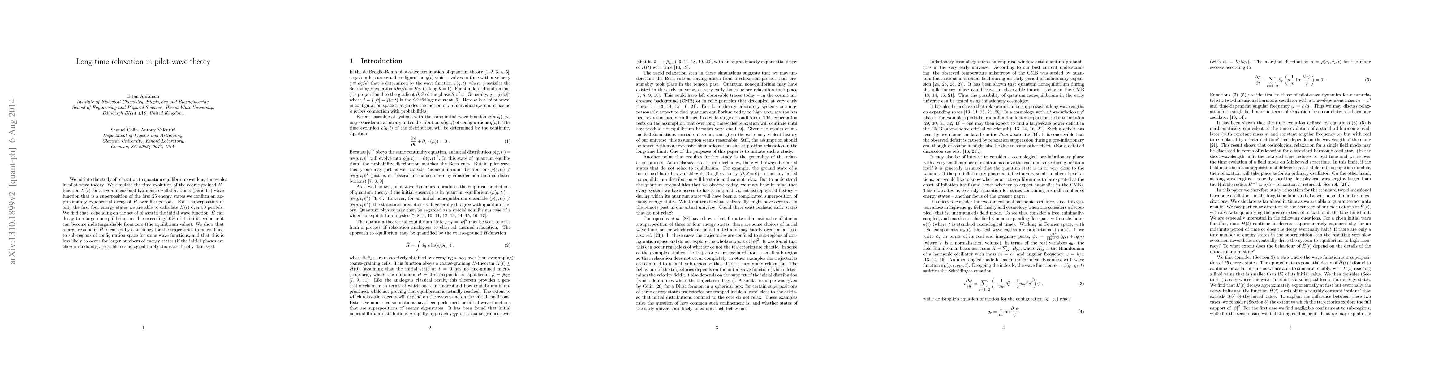 This study investigates long-time relaxation in pilot-wave theory, finding that a quantum system can decay to a large nonequilibrium residue exceeding 10% of its initial value over extended periods.