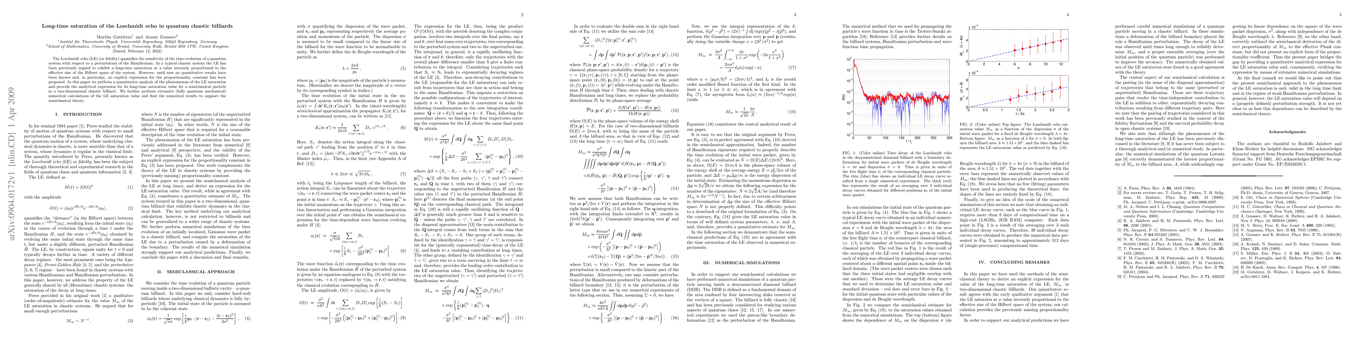 Researchers studied the long-time behavior of the Loschmidt echo in a two-dimensional chaotic billiard, finding that it saturates at a value inversely proportional to the system's Hilbert space size, with numerical results supporting the theoretical prediction.