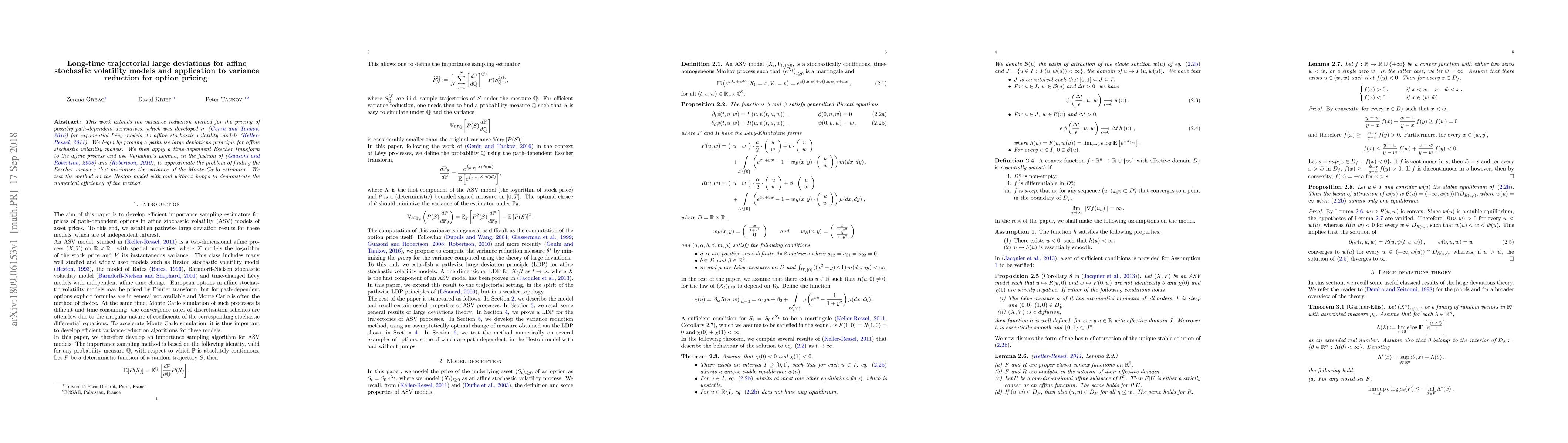This paper extends variance reduction techniques for option pricing to affine stochastic volatility models, proving a pathwise large deviations principle and applying a time-dependent Esscher transform to demonstrate numerical efficiency, particularly in the Heston model.