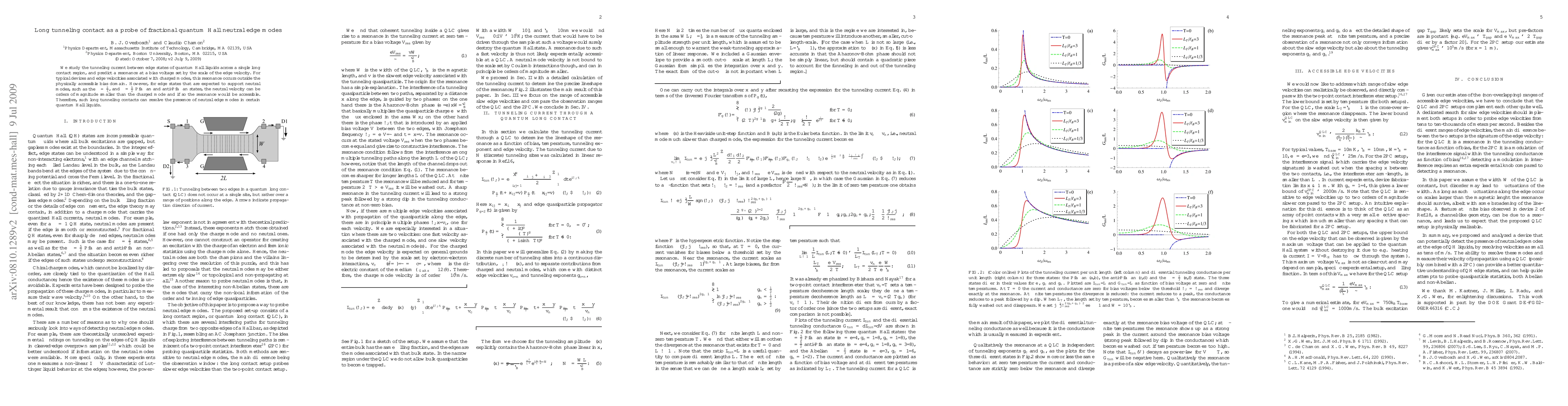 We study the tunneling current between edge states of quantum Hall liquids across a single long contact region, and predict a resonance at a bias voltage set by the scale of the edge velocity. For typical devices and edge velocities associated with charged modes, this resonance occurs outside the physically accessible bias domain. However, for edge states that are expected to support neutral modes, such as the $\nu={2/3}$, and $\nu={5/2}$ Pfaffian and anti-Pfaffian states, the neutral velocity can be orders of magnitude smaller than the charged mode and if so the resonance would be accessible. Therefore, such long tunneling contacts can resolve the presence of neutral edge modes in certain quantum Hall liquids.